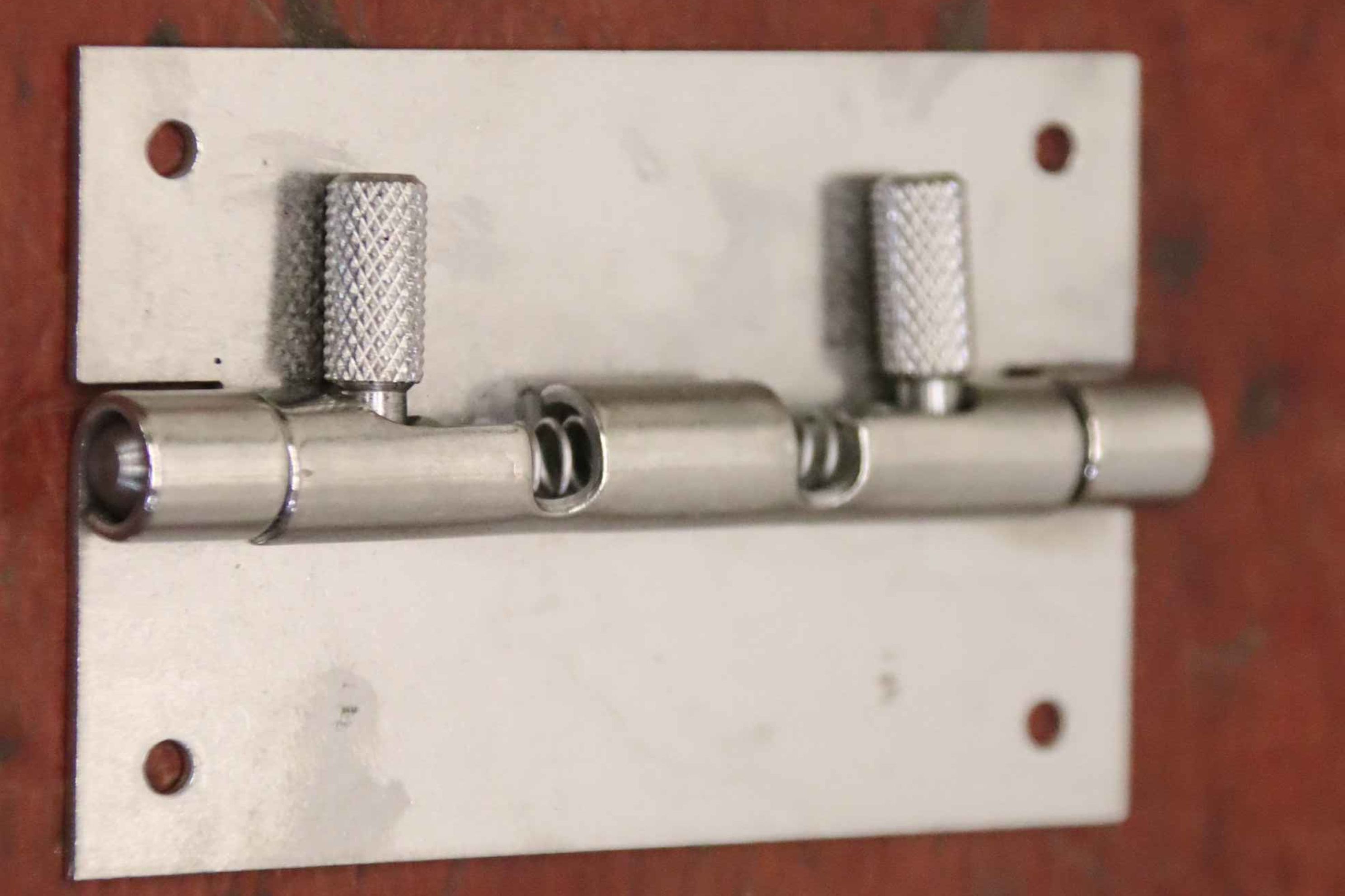 locking hook, guy hook, cabinet hook, locking hook, locking bracket, folding bracket lock-Locking bracket: Folding bracket unused-Number: 23x hangers available-Price: per piece / minimum order 8 pieces-Dimensions when folded: 86/35/H10 mm-Weight: 0.1 kg/piece