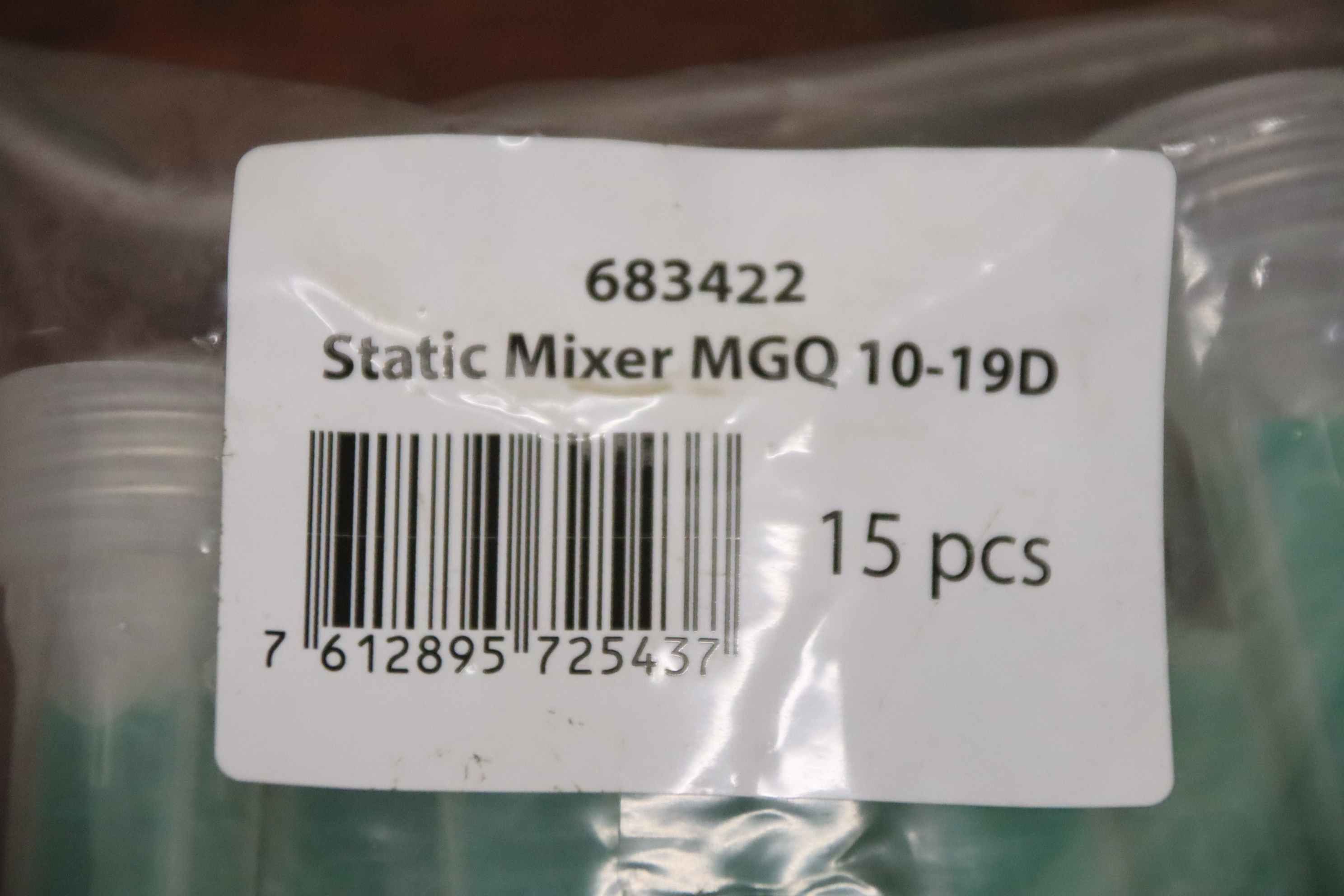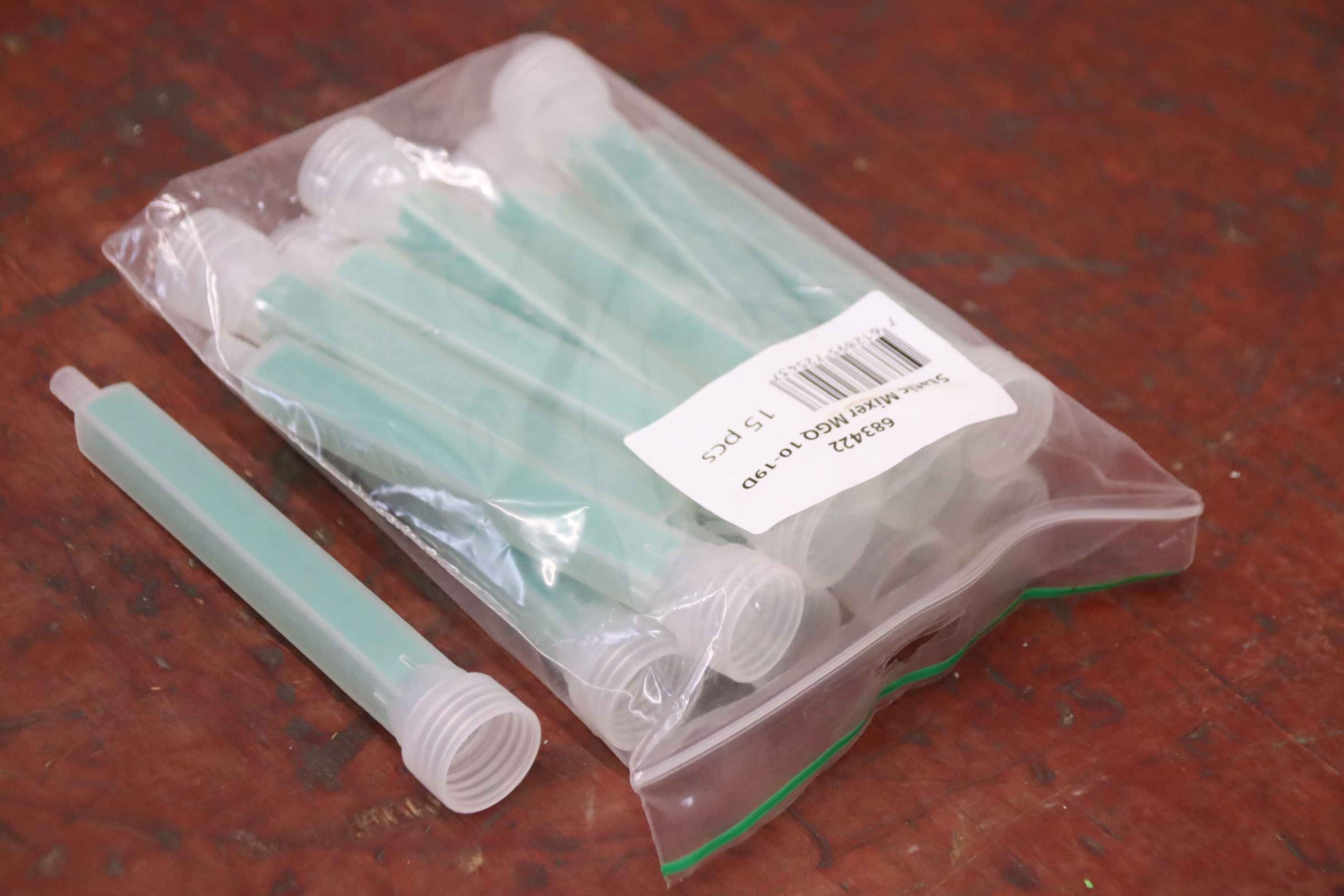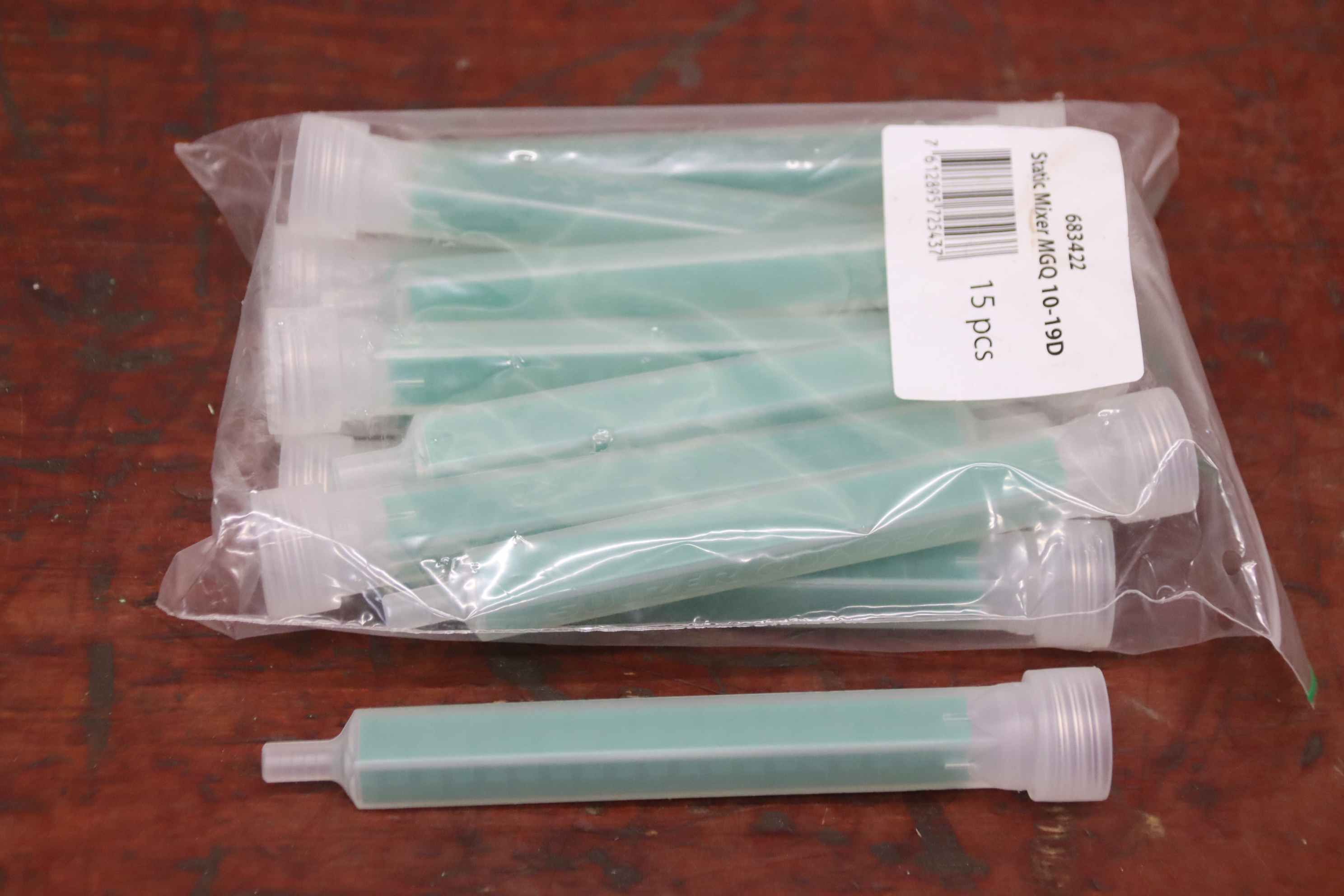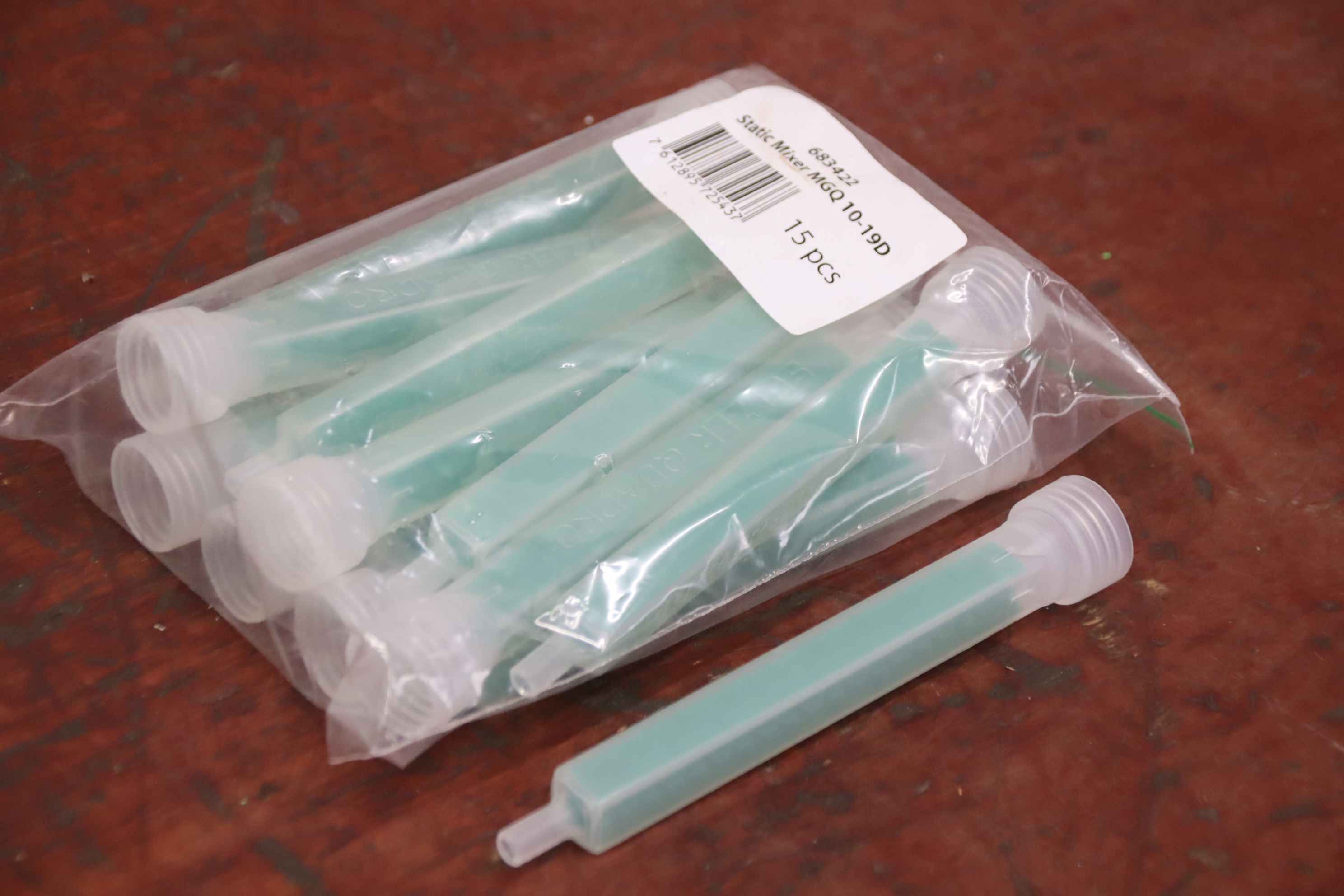 Static Mixer, Disposable Mixer, Plastic Spiral Mixer-Manufacturer: tsi, Static mixer SULZER QUADRO MGQ 10-19D 15 pieces-Version with Luer-Lock attachment for dispensing needles-Industrial standard connection can also be used for other cartridge systems-Thread: MGQ Series 7/8 - 9 UNC coarse thread-Quantity: 3 bags with 15 pieces each available-Distribution/Price: per bag, minimum order 2 bags-Bag dimensions: 190/130/H40 mm-Weight: 0.2 kg/bag