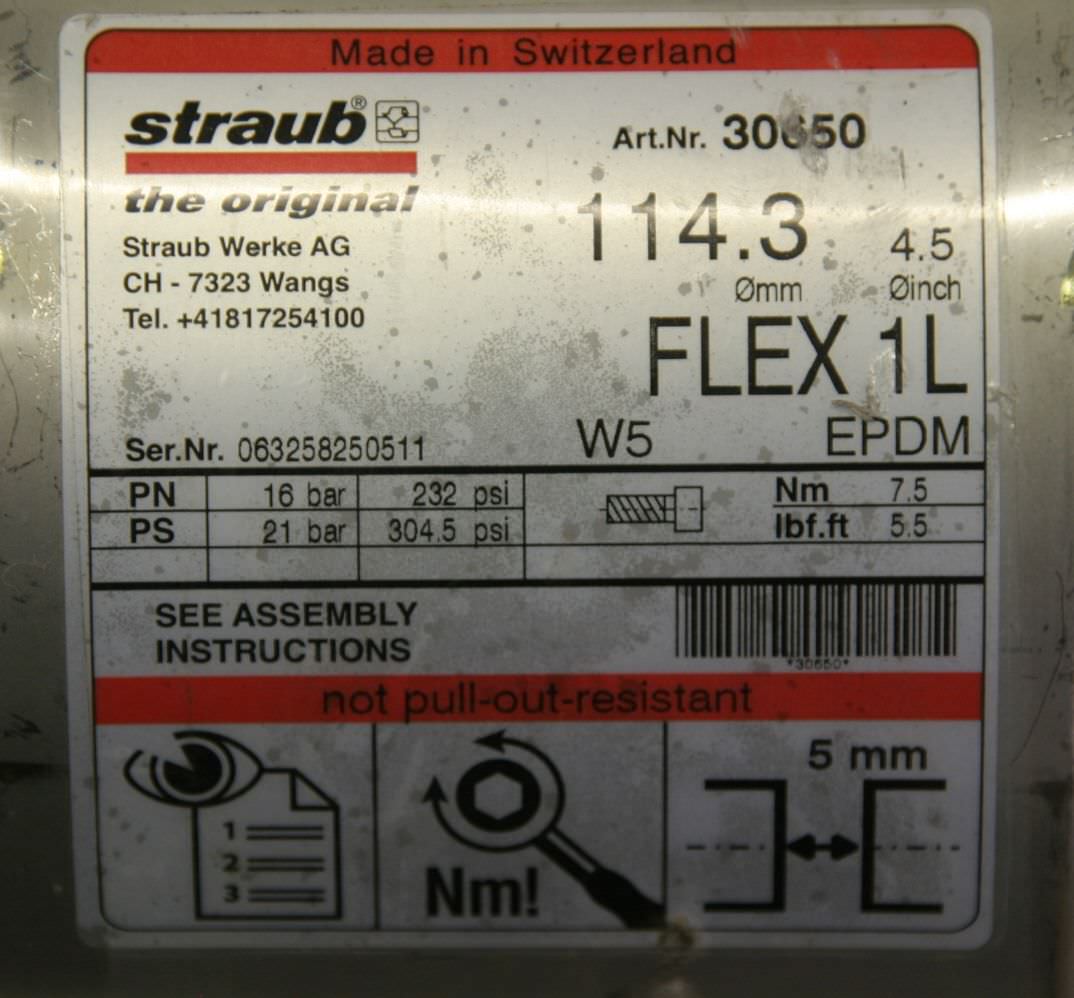 Vibration damper, compensator, damper -Installation: on pumps, compressors, valves -Machines: for noise reduction and absorption of small vibrations -Size: DN100 -Width: 320 mm -Weight: 9.8 kg
