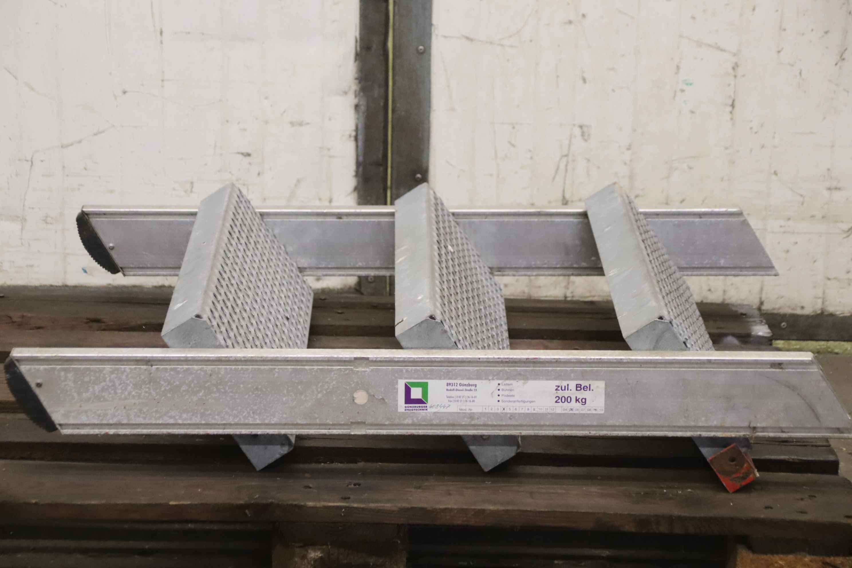 Steel staircase, external staircase, machine staircase, machine access, extension staircase, machine platform -Manufacturer: Günzburger, Machine stairs, Machine access -Step size: approx. 600 x 260 mm -Height: upper step 685 mm -Permissible load: 200 kg -Number: 1x staircase available -Dimensions: 650/980/H210 mm -Weight: 14 kg