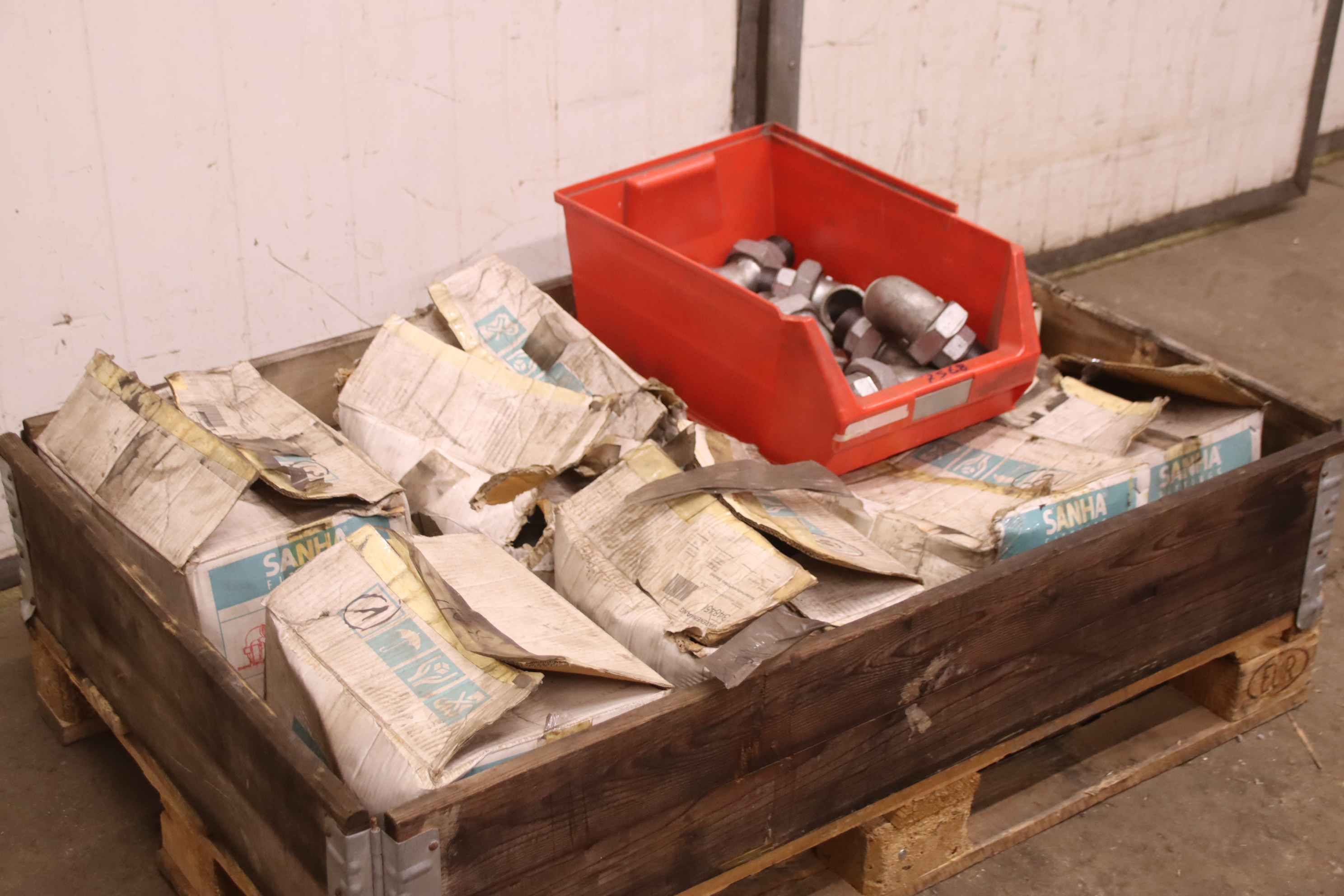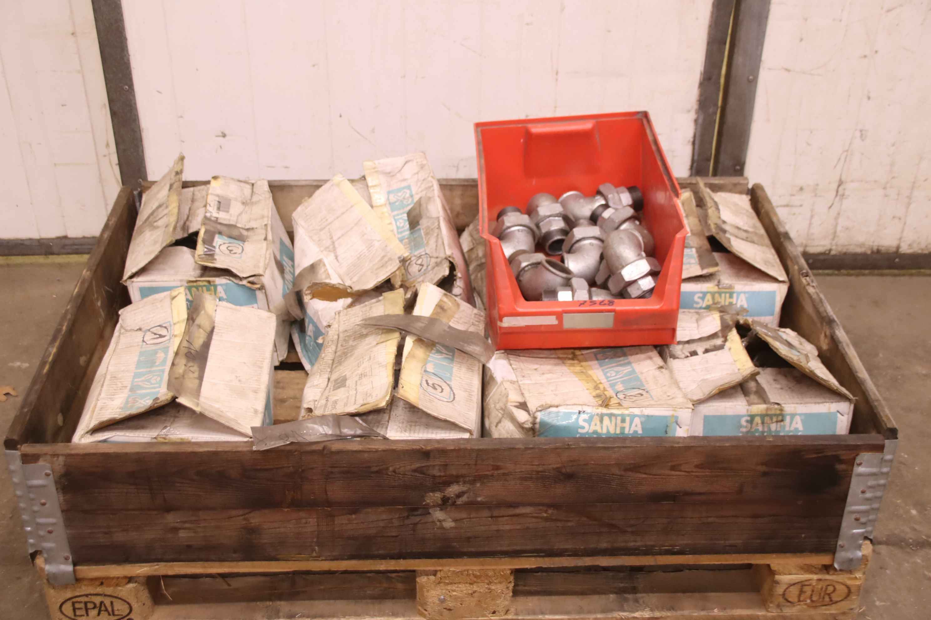 Threaded fitting, malleable cast iron thread fitting, elbow fitting, pipe angle fitting, pipe angle, threaded fitting, malleable cast iron threaded fitting-Manufacturer: Sanha, malleable iron threaded fitting elbow fitting 89 pieces-Size: 90° 1 1/2-Order No.:. 12979-1 Art. 97-Price: complete-Total weight: 134 kg