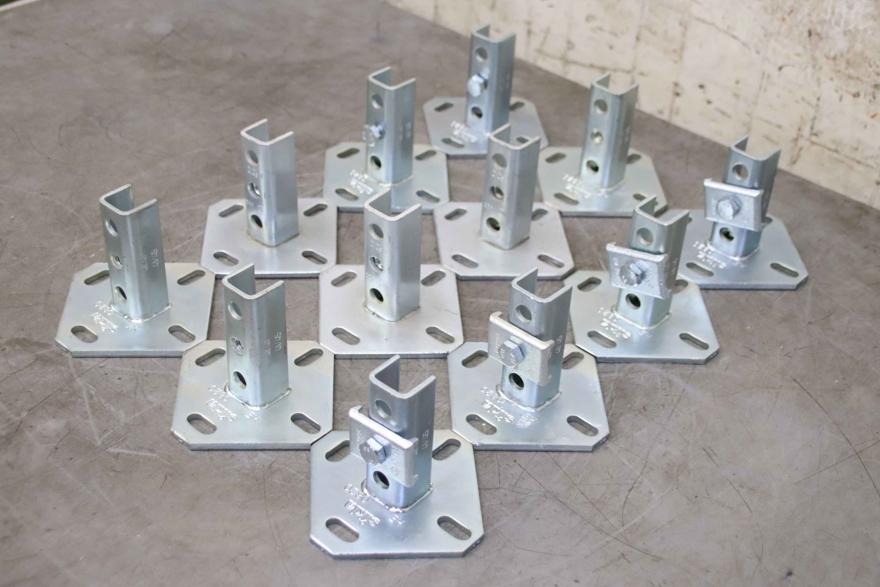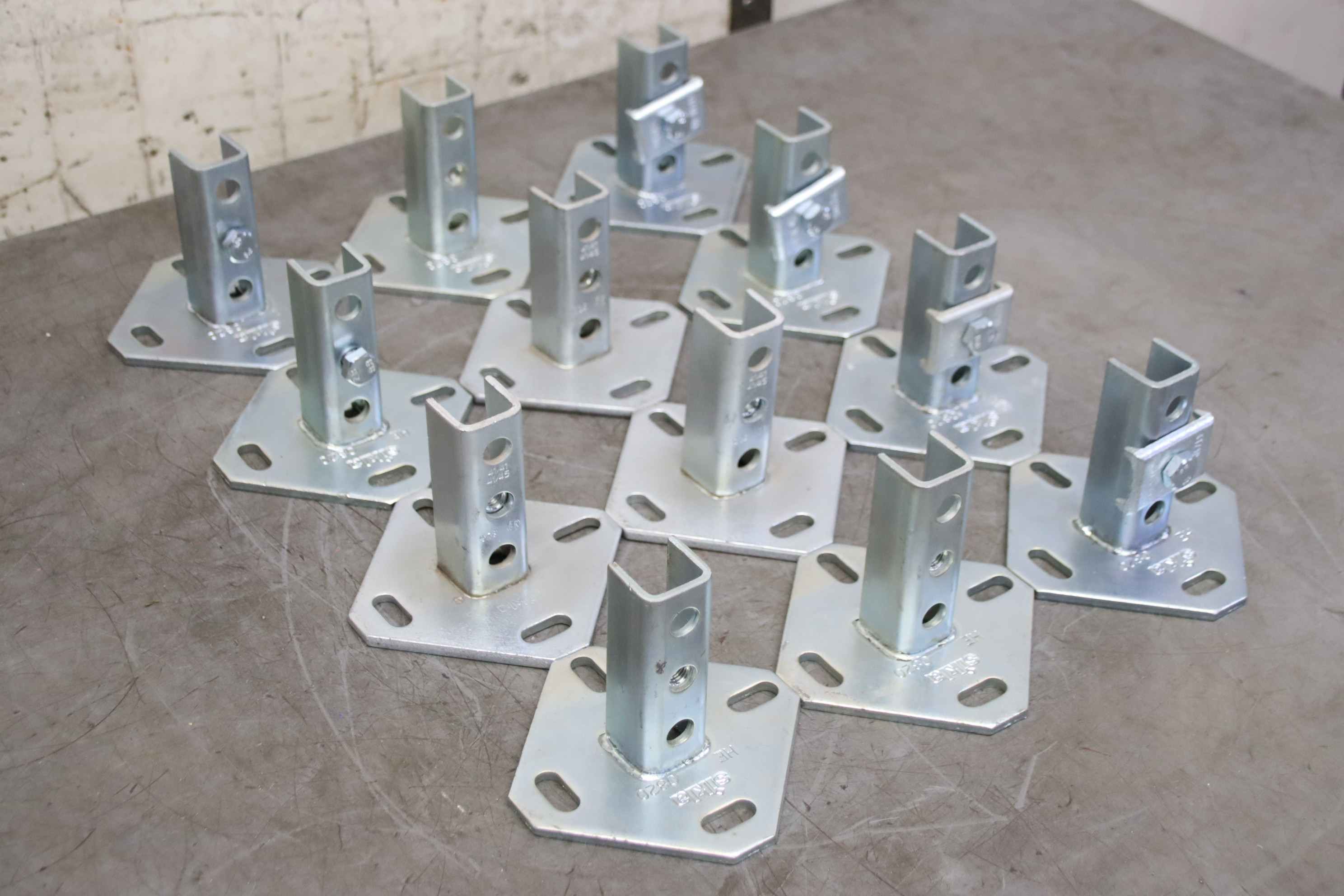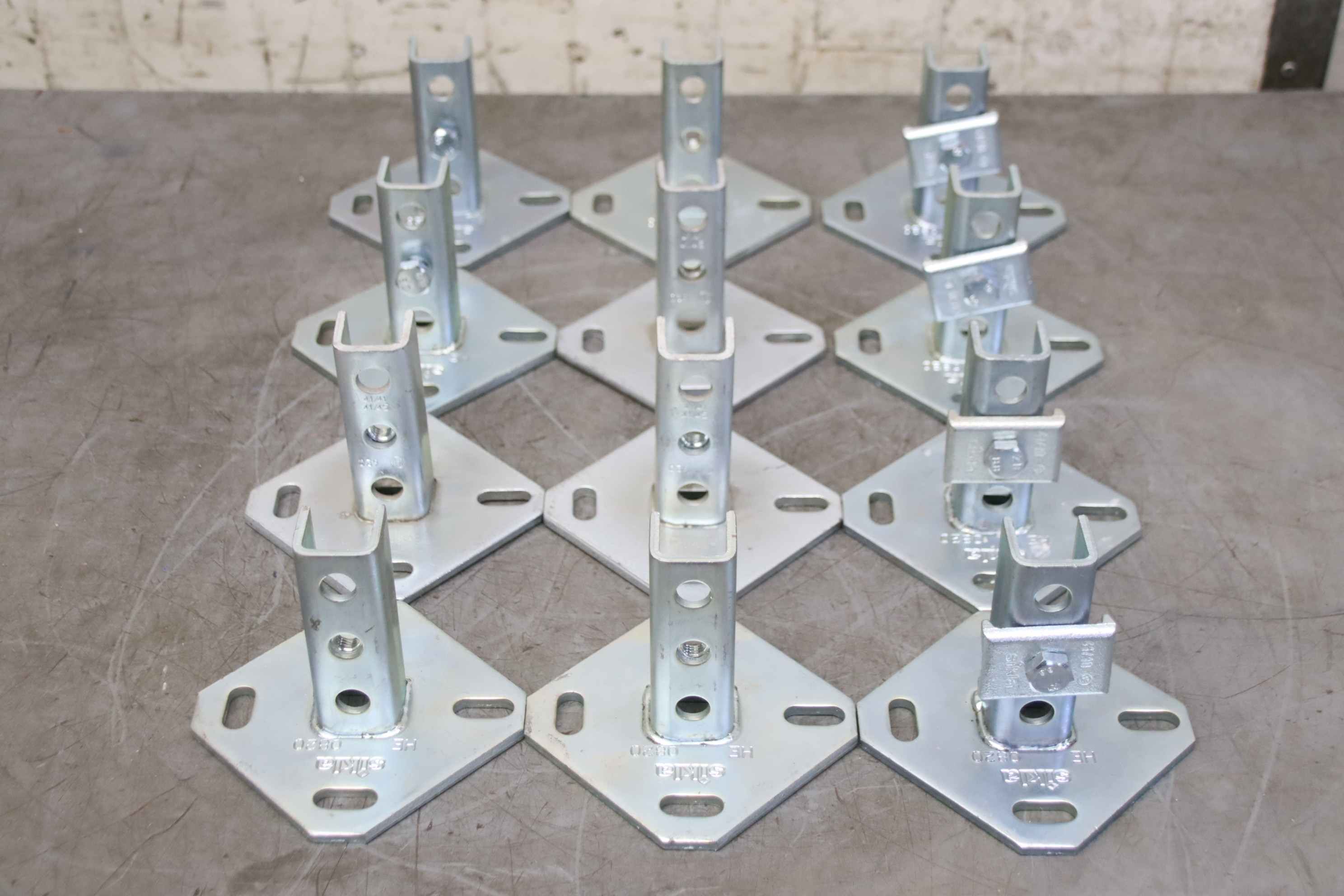 Mounting rails, sliding set, pipe clamps, pipe fastening, pipe clamp bracket, WBD holder -Manufacturer: Sikla, WBD holder for mounting rails -Type: HE 0820 41/41 41/45 -Quantity: 12 holders, 4 with clamping brackets -Price/Sale: complete -Overall dimensions: 380/250/H105 mm -Total weight: 8.8 kg