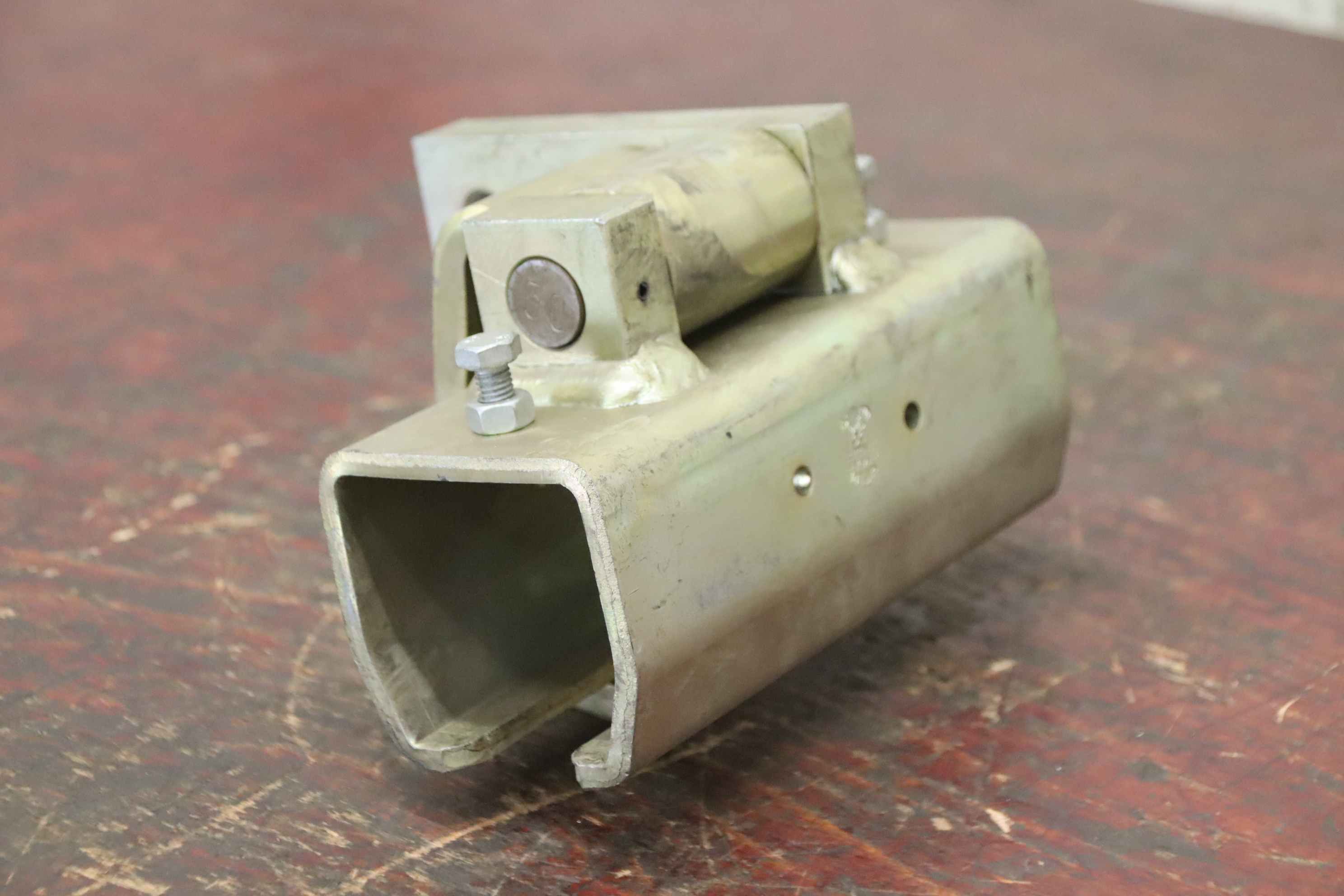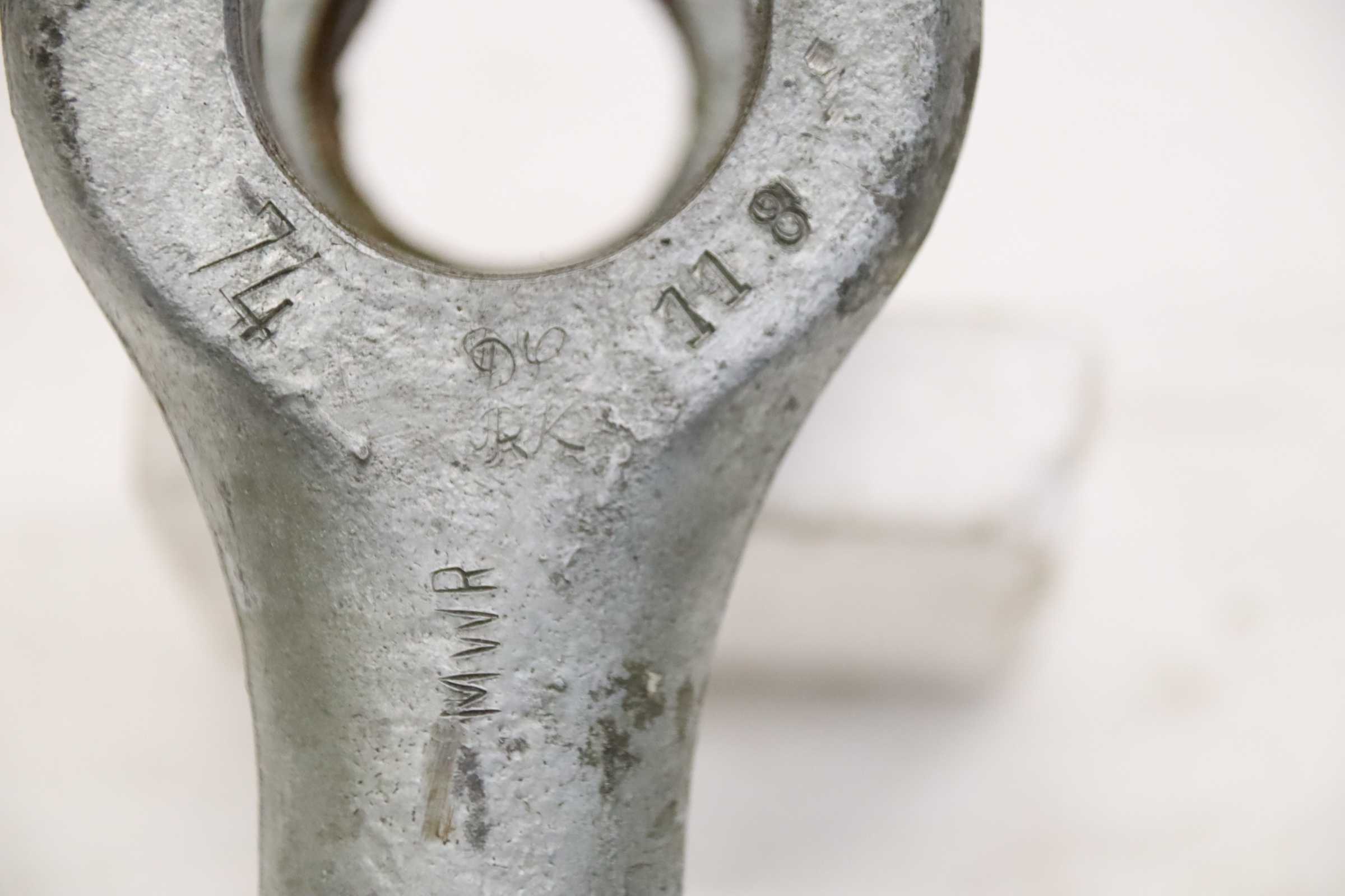 Shackle, load block, swivel block, lifting block, shackle, heavy-duty shackle, load jack, lashing eye, lashing ring, anchor point, load block thread, lashing point -Manufacturer: VEB MWR, shackle heavy-duty shackle -Type: 5 TGL 20440 Form A -Tensile force: 100 kN -Number: 4 shackles available -Price: per piece -Dimensions: 270/190/H95 mm -Weight: 10.1 kg/pc.