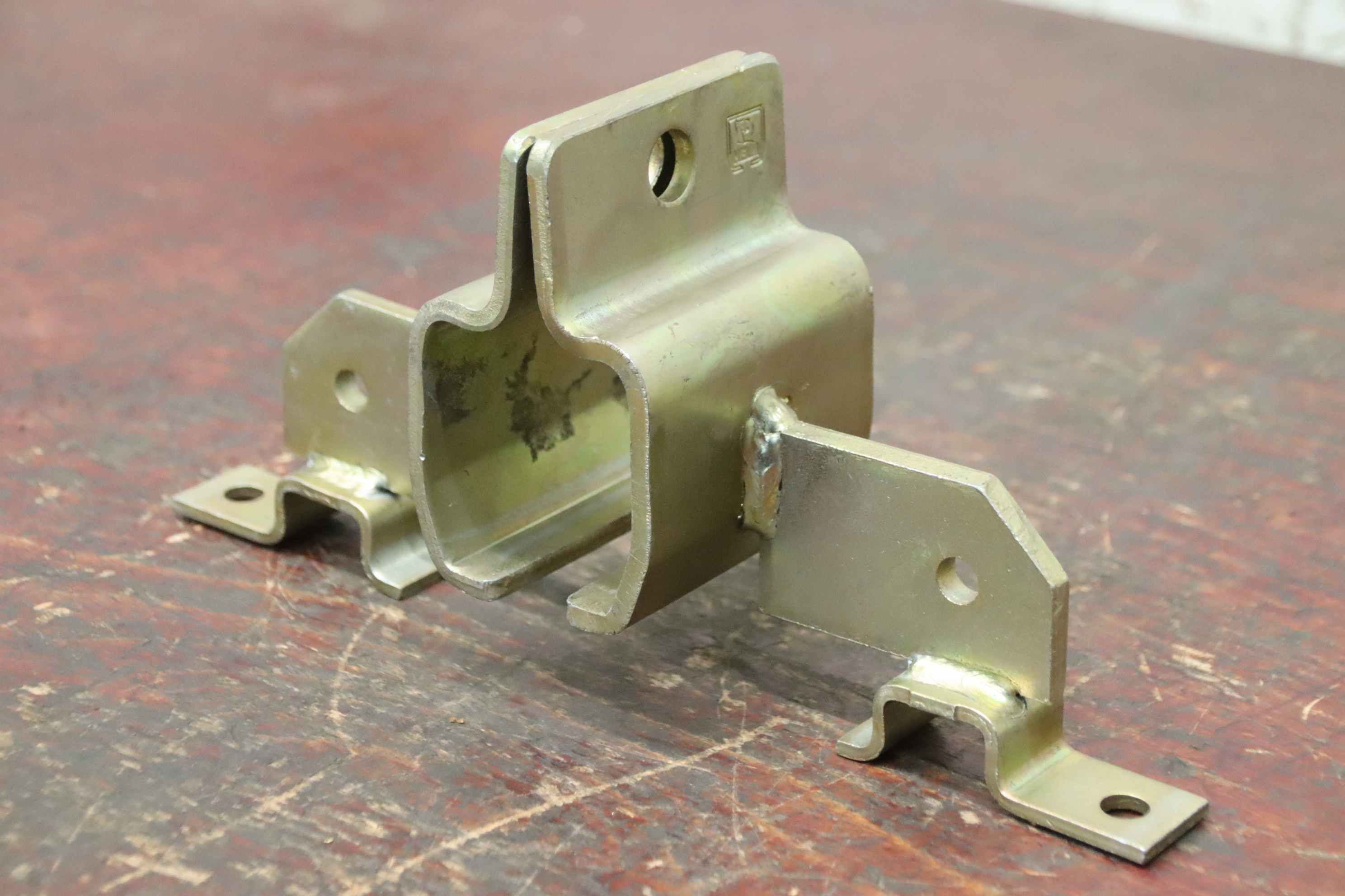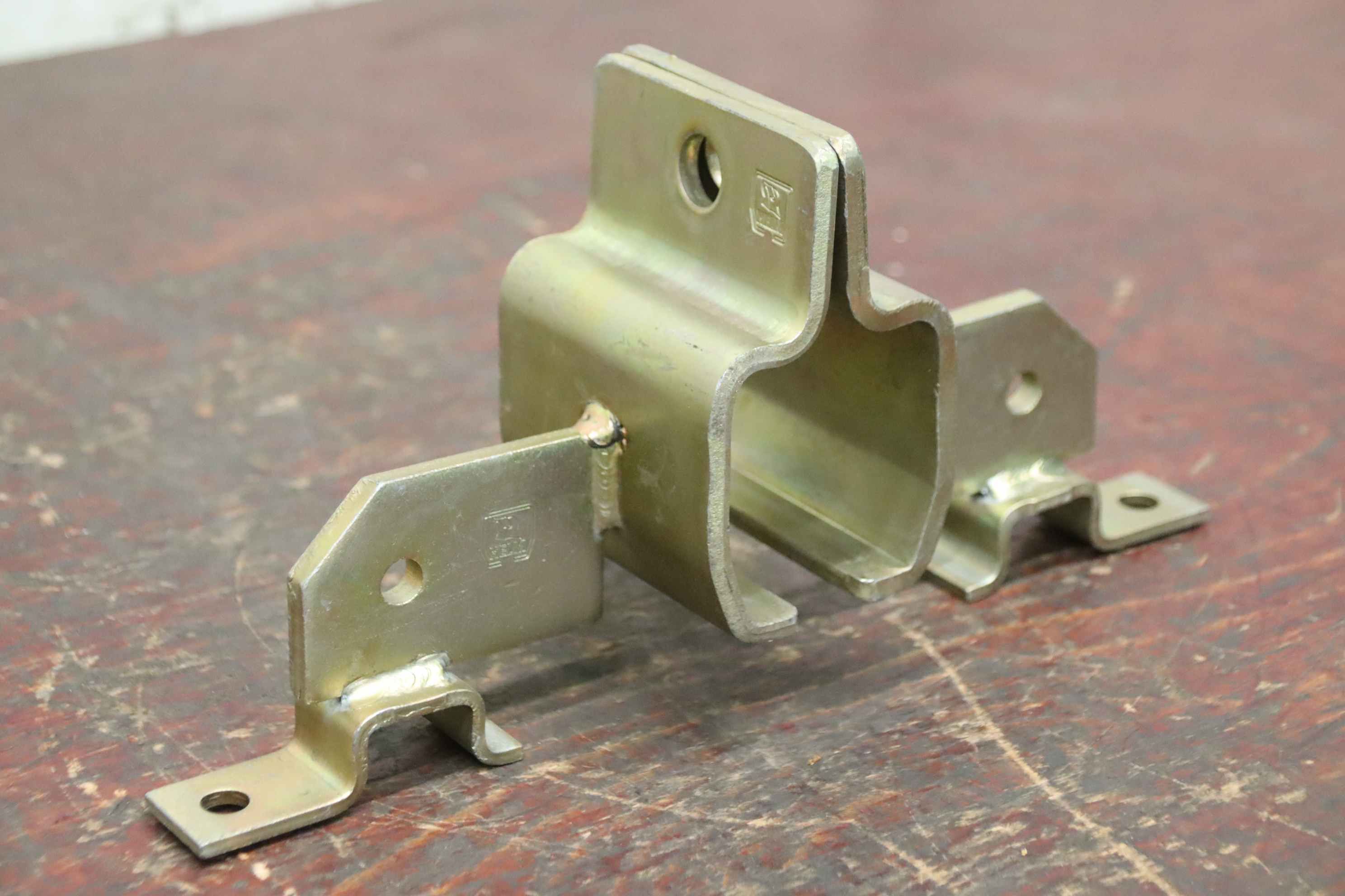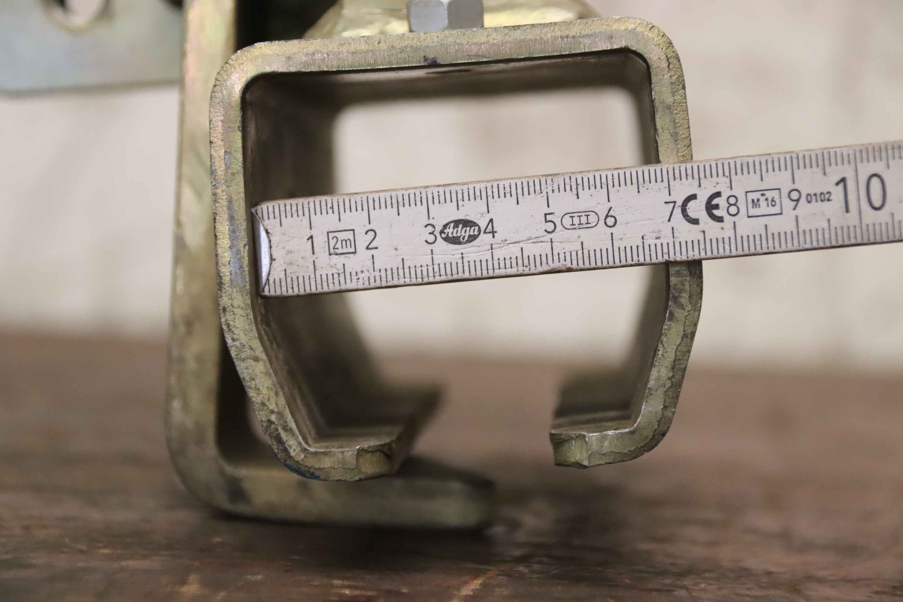 Suspension clamp, helmet rail holder, helmet rail, running rail, rail holder-Manufacturer: Helm, suspension clamp rail holder galvanized yellow-Type: 1508 Width 70 mm-Dimensions: see photos-Number: 2x suspension clamp available-Price: per piece-Dimensions: 295/90/H150 mm-Weight: 1.9 kg/piece