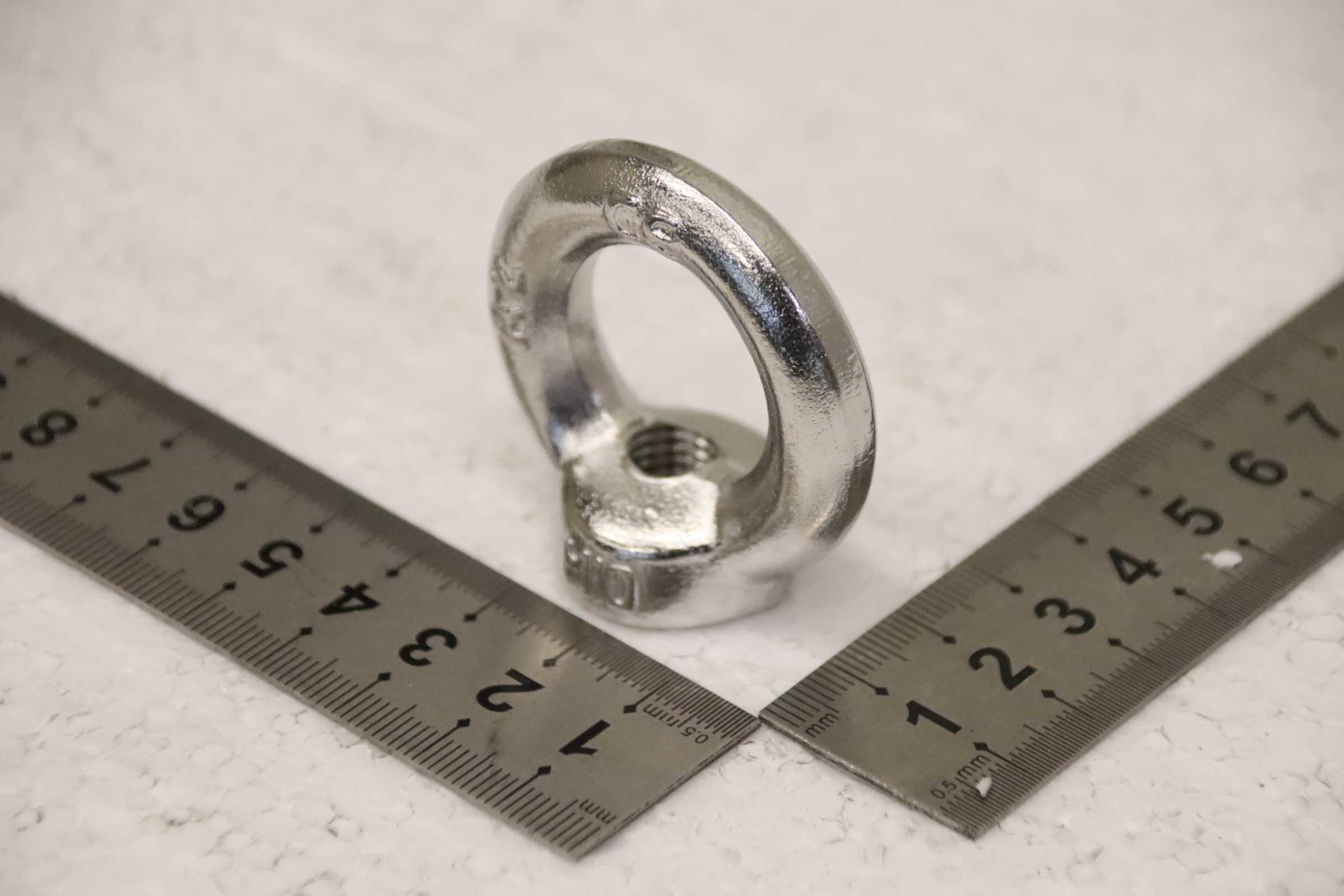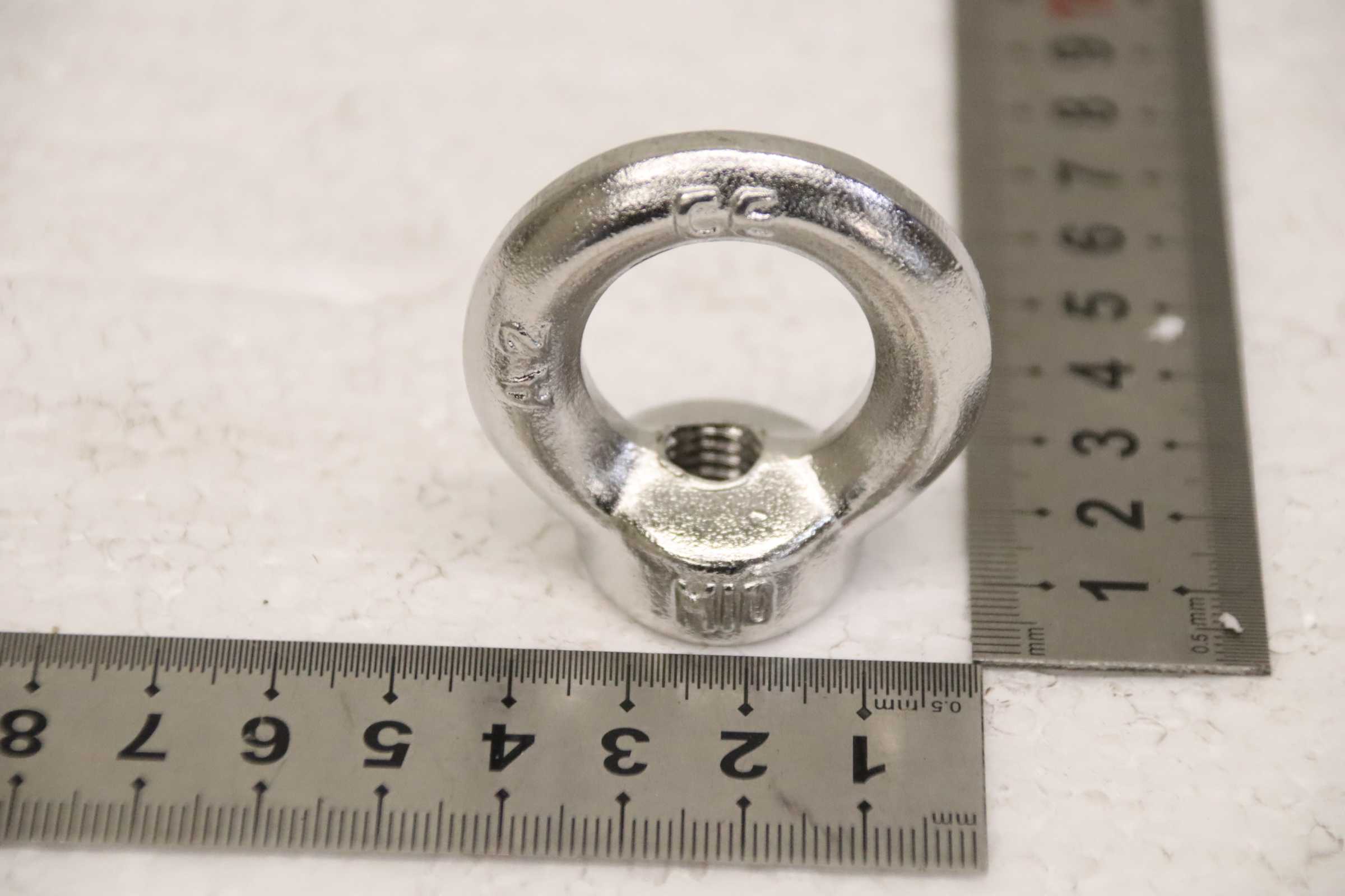 Screws, eye bolts, crane eye, ring nut, eye nut -Manufacturer: Golfaro, M10 eyebolts -Grade: Stainless steel A2 -Quantity: 140 ring nuts available -Price: per piece/ Minimum order 15 pieces -Dimensions: 45/26/H46 mm -Weight 0.1 kg/pc.