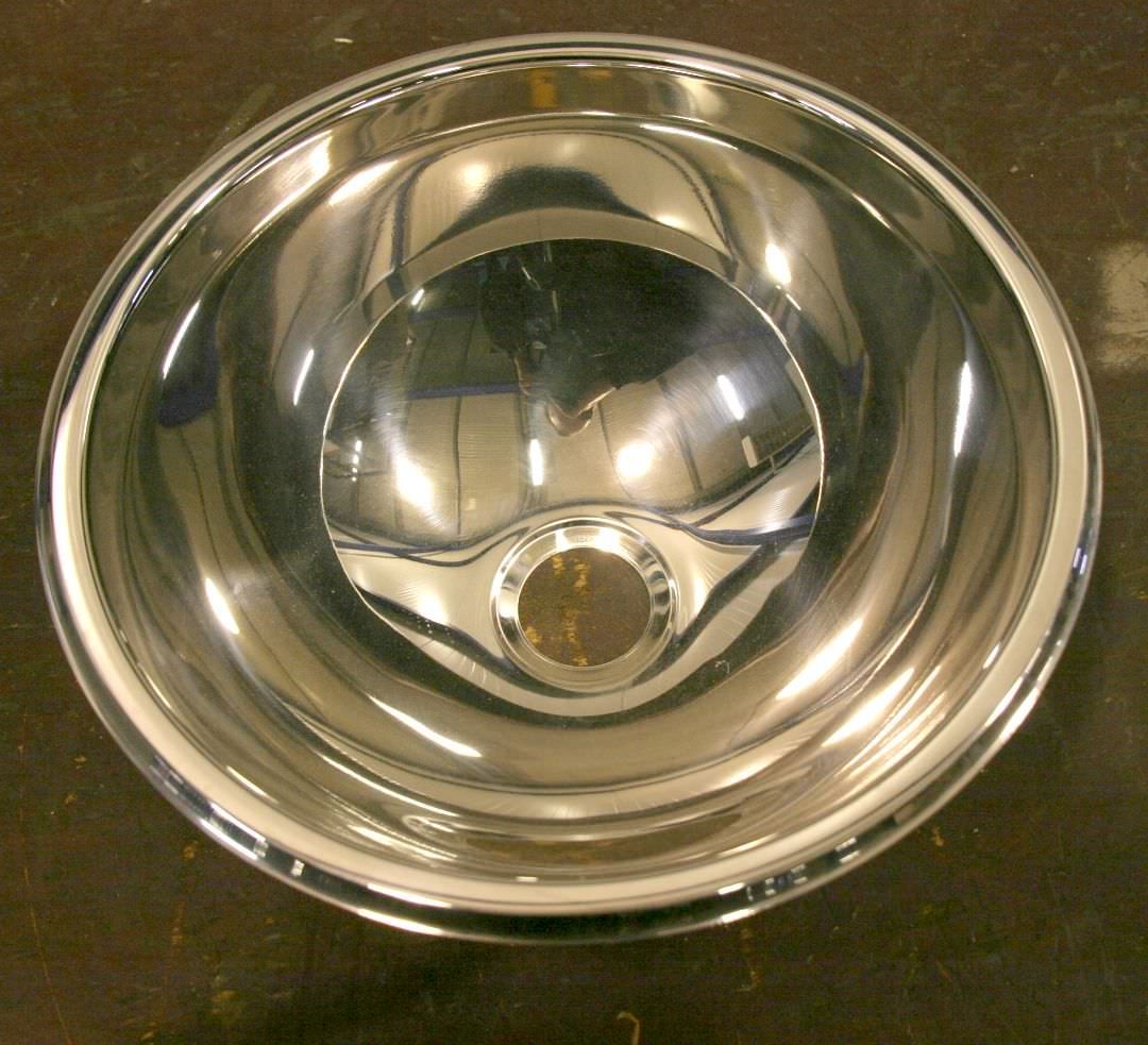 Hand basin, wash basin, weld-in basin -Stainless steel sink -Interior dimensions: 300 mm -Depth: 150 mm -Edge: 17 mm -Drain: Ø 52 mm -Number: 7x available -Price: per piece -Dimensions: 340/H150 mm -Weight: 2.1 kg