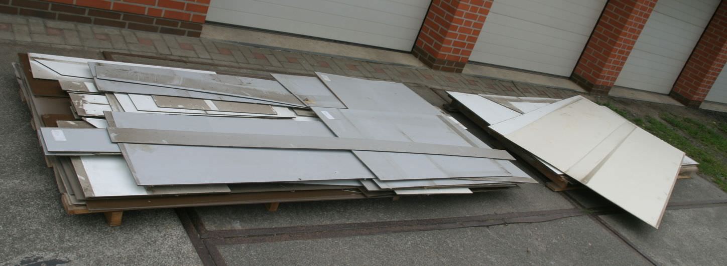 Plastic sheets, plastic laminate -various sizes -Thickness: 6 mm -Outdoor outdoor area: usable -on: 2 pallets -Sale: only complete set -Dimensions: 1450/3100/H340 mm -Weight: 720 kg
