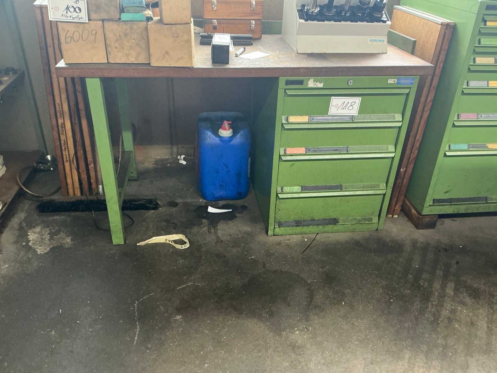 W tym GARANT-L 125 z regulowaną wysokością imadła, 2 szafki pod blatem po 7 szuflad, różne narzędzia ręczne Auction-ID: A1-44702-104