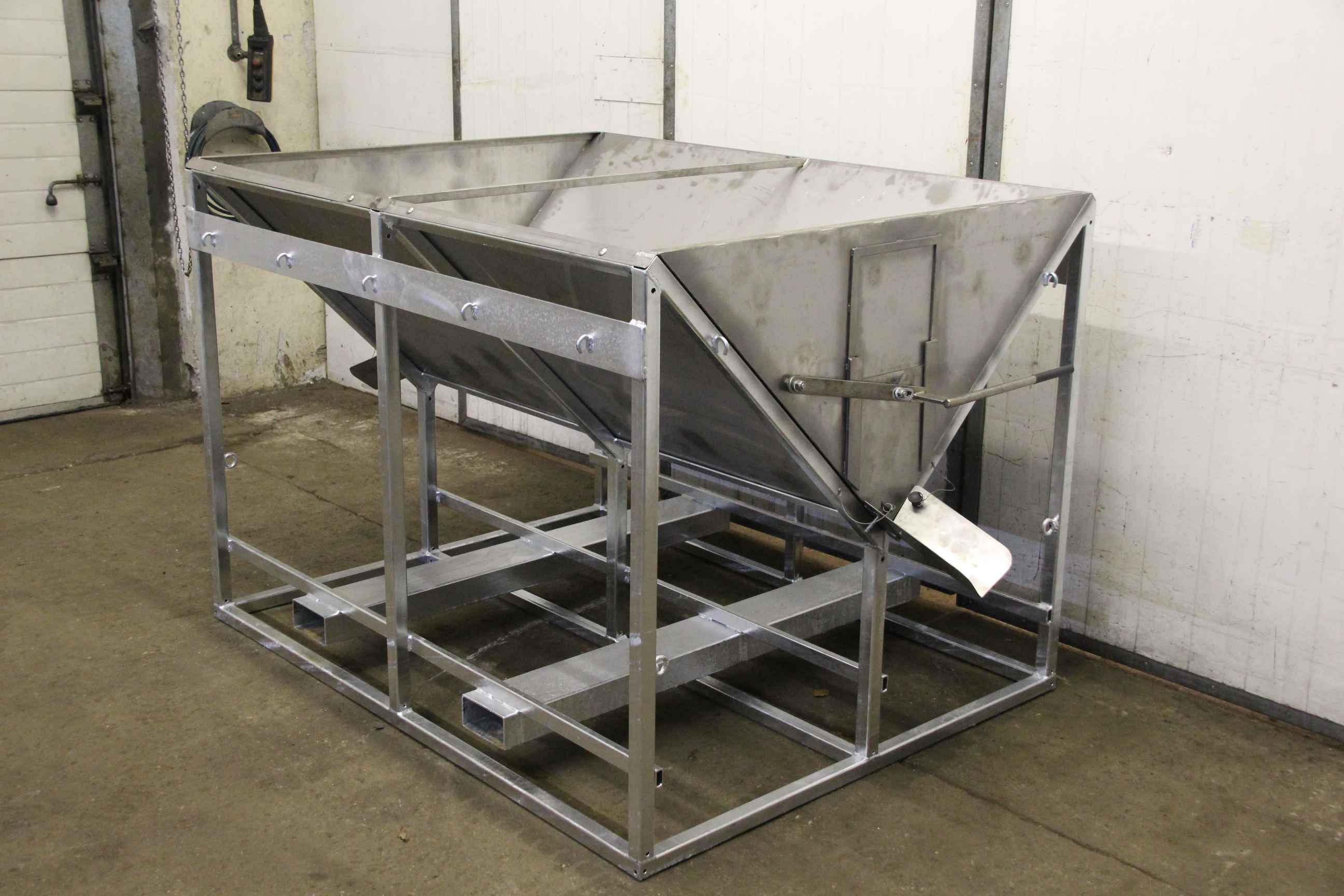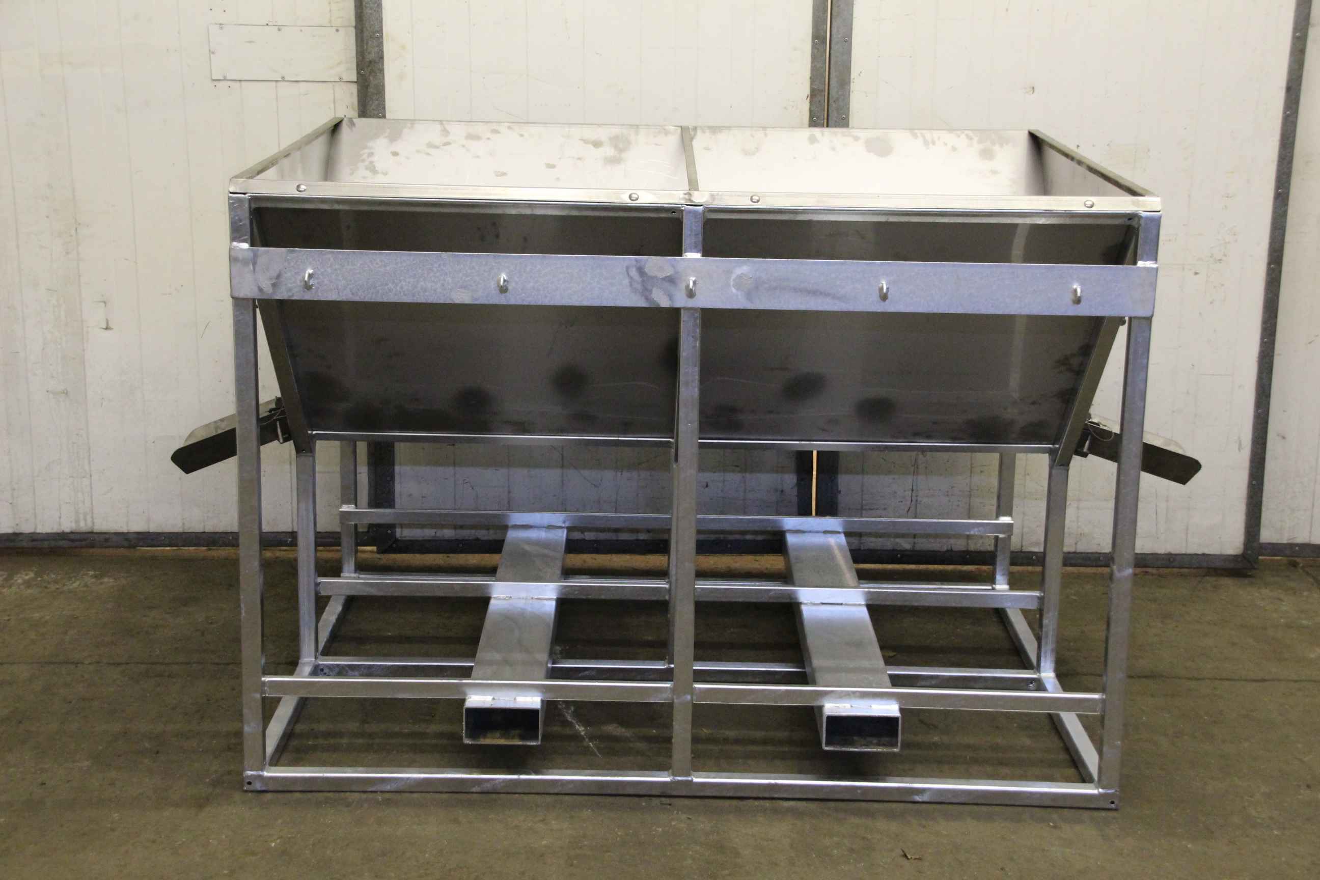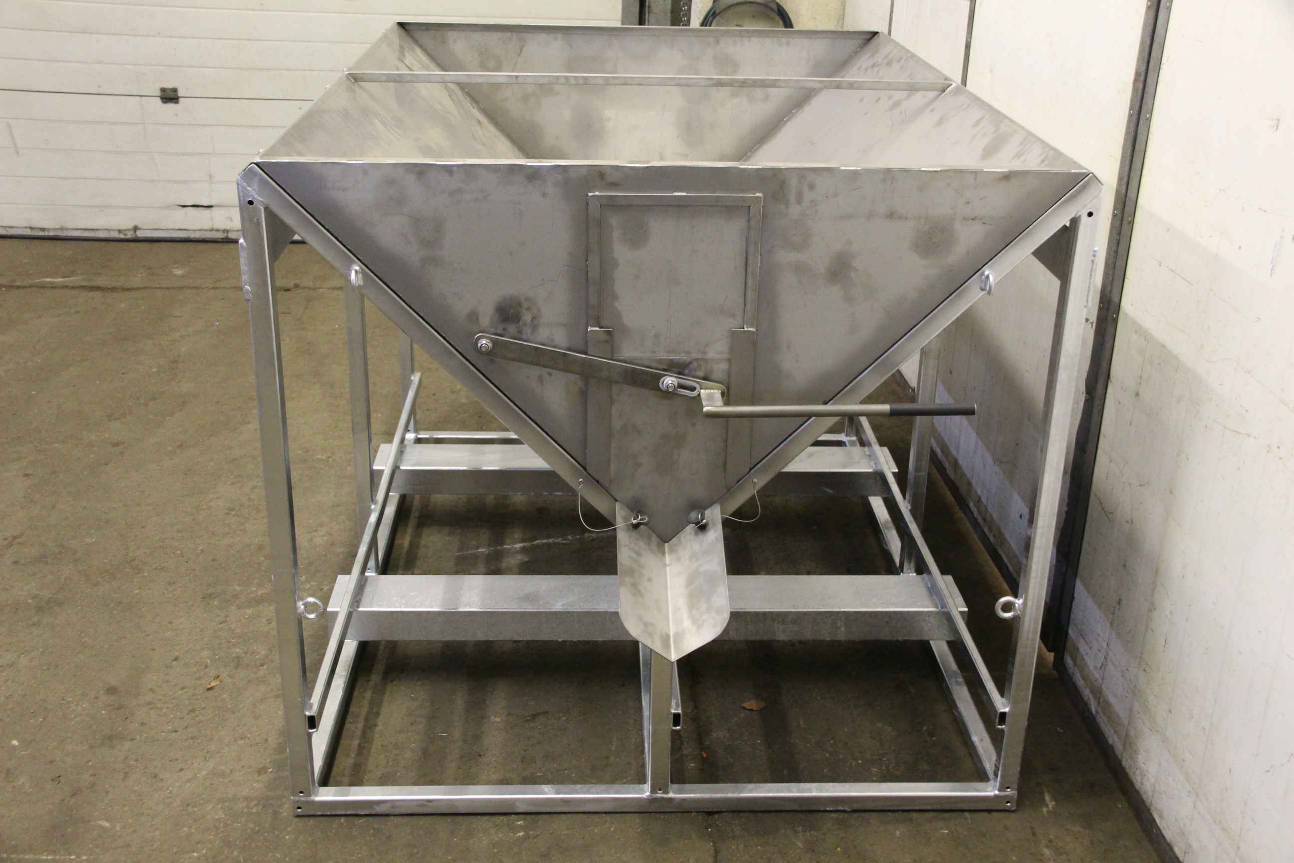 Transport container winter service, for spreader, salt spreader, salt container, grit container,-Filling device: for road salt, fertilizer, for hand spreader-Bank: made of stainless steel-Transport frame: made of galvanized steel tube-Transport dimensions: 1800/1400/H1265 mm-Weight: 250 kg