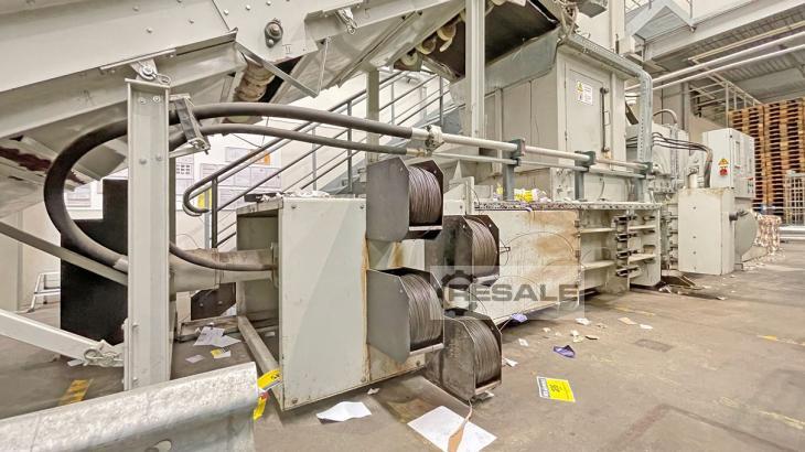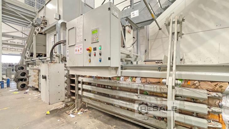 Prasa automatyczna Producent: PAAL typu: KONTI 600 F Rok budowy 2009 Godziny pracy: tylko ok. 22 000 Specyfikacje: Siła nacisku: 150 t przy 300 bar Właściwa siła nacisku: 124 N/cm² Wymiary beli: 1.100 x 1.100 x długość w mm Otwór wlewowy: 2.000 x 1.020 mm Moc napędu: 2 x 45 kW Przepustowość: ok. 375 m³/h Wydajność przy 35 kg/m³: 13,0 t/h Wydajność przy 60 kg/m³: 22,5 t/h Wydajność przy 100 kg/m³: 35,0 t/h Wiązanie: 5-krotne pionowe Waga beli: ok. 800 - 1 250 kg w zależności od belowanego materiału i długości beli Masa maszyny: do ok. 45 t