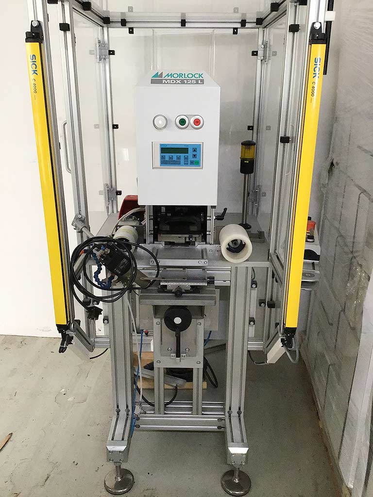 Dostępna jest jednokolorowa maszyna do tampodruku Morlock. System atramentowy: system kubków, owalny zakres średnic obrazu druku: 100mm-250mm, min. wymiary obrazu druku kliszowego X/Y: 100mm/210mm, maks. wymiary obrazu wydruku klisza X/Y: 250mm/280mm, średnica pojemnika na tusz: ok. 80mm, zakres siły nacisku: 1100N-1500N, max. szybkość cyklu: 1400-1800 cykli/h, wymiary maszyny X/Y/Z: ok. 1050mm/500mm/650mm, waga: ok. 250kg, kontrola: Simens. Dostępna dokumentacja. Możliwa jest wizja lokalna.