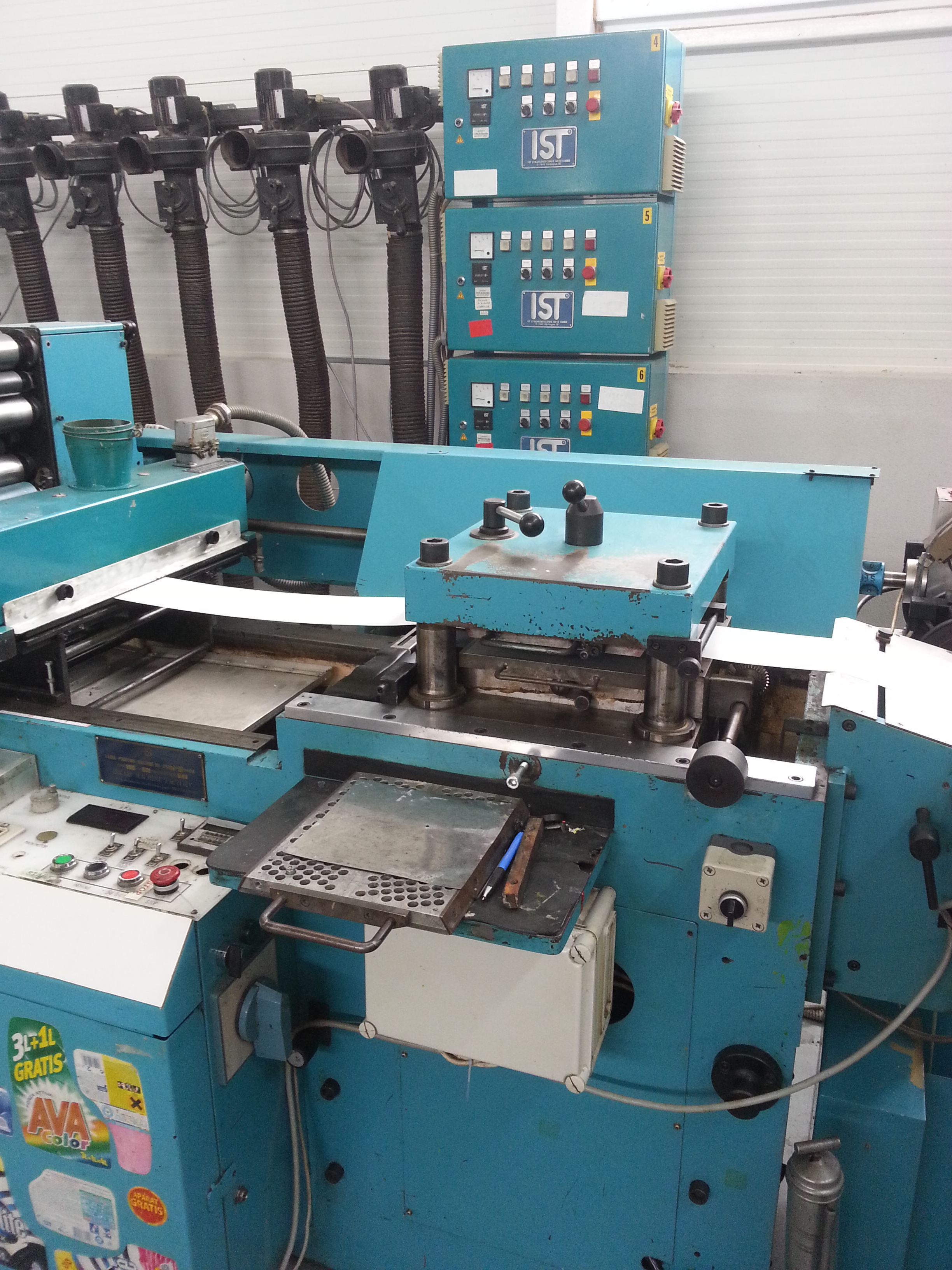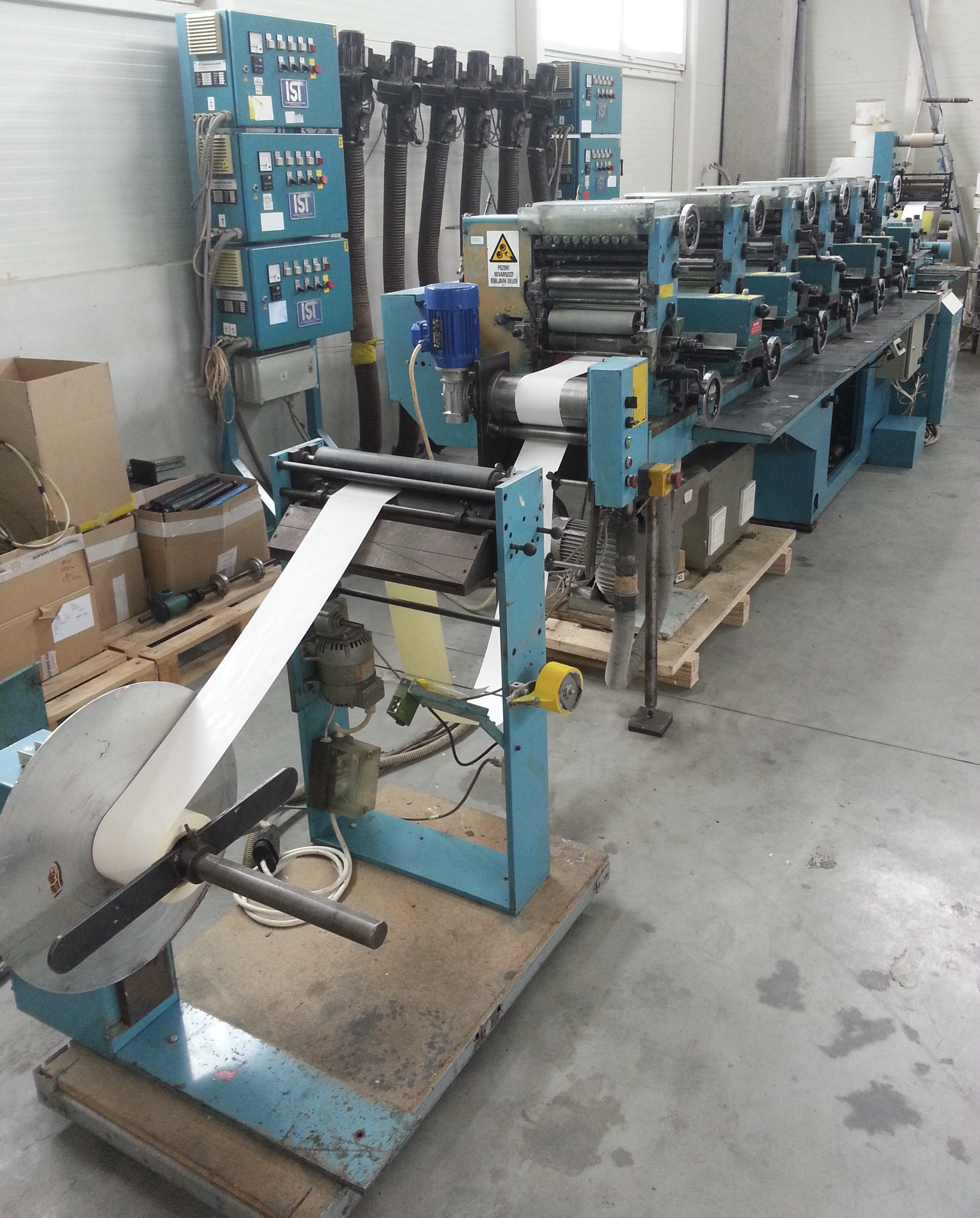 em510 , built in 2007 3 x printing units with dual drive, max. printing width 510 mm 3 x punching station (2 x with adjustable counter-punching cylinders (Spilker Variabase)) Cliché cylinders (1/8"): 3 x 88, 3 x 92, 3 x 96, 3 x 100, 3 x 108, 3 x 116, 3 x 120, 3 x 140 Magnetic cylinders (1/8"): 2 x 96, 3 x 100, 3 x 108, 3 x 116, 3 x 120, 4 x 140, 3 x 176, 3 x 184, 2 x 192, 1 x 222 13 anilox rollers (cm3): 4.1; 5.04; 6; 6; 6.3; 6.09; 8; 8.25; 9.58; 13; 13.51; 16.57; 30 2 x new anilox rollers 3 x sleeve holders z=88 for coating (with assembly station) Screen printing unit Laminating station 2 x grid winders on rails (up and down) 3 x Uviterno UV system (240 W/cm) 2 x NIR drying modules for aqueous systems (Lambda technology) Corona system 2Kw (SIT) Web edge control: E&L (2 x ultrasonic sensors, 1 x line sensor) Video: E&L Elscan Outfeed conveyor for individual labels Doub ...