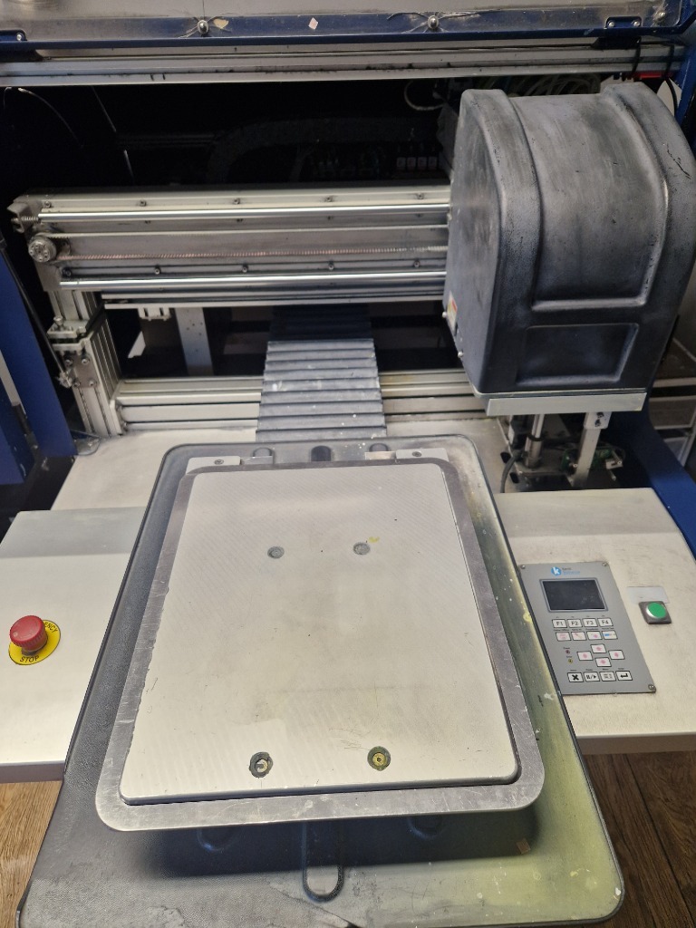Manufacturer: Kornit Model: Breeze Print count: 128,500 - The printer is sold without print heads - It has an integrated pre-treatment unit. - The set includes tables for body and sleeve prints, as well as for children´s t-shirts. I have a Kornit Breeze printer for sale, from a Polish distributor. The print count is 128.5 thousand. The printer is sold without print heads. It has an integrated pre-treatment unit. The set includes tables for body and sleeve prints, as well as for children´s t-shirts. The printer has not been used for a year. I can issue an invoice if needed. There is also an option to purchase individual parts – we can sell 3 different mainboards, tables, manifold, side doors, or the wiper mechanism. The machine was installed here in November 2018. The manuals show the date 2017, the year is most likely one or the other. Find more here - / Contact us at -