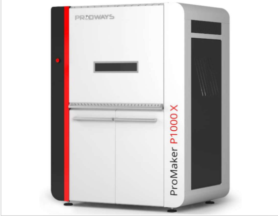 Manufacturer: Prodways Model: ProMaker P1000X Year of Manufacture: 2021 Type of Machine : SLS plastic 3D printer, including nitrogen generator Condition: Used Operational: Yes Included Equipment: - Prodways ProMaker P1000X – SLS Plastic 3D Printer, including nitrogen generator - ProTool BS02 – Unpacking Station - Pallet Truck Overall Width: 1700 mm / 67 in Overall Depth: 1159 mm / 46 in Height: 2008 mm / 79 in Total Weight: 750 kg / 1653 lbs
