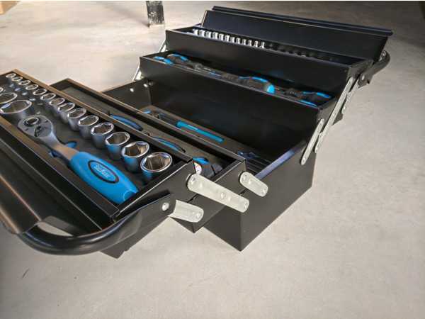 86-częściowa skrzynka narzędziowa wypełniona narzędziami wysokiej jakości Nowością w pudełku, narzędzia StahlKaiser ze stali chromowo-wanadowej, 12 kluczy pierścieniowych: 6-8-9-10-11-12-13-14-15-16-17-19 mm, 1 szczypce blokujące (spawalnice) o długości około 22 cm, 1 szczypce pompy wodnej o długości ok. 24,5 cm, Zestaw kluczy imbusowych 9 elementów (1,5 - 10 mm), 1 szczypce igiełkowe o długości około 16 cm, 1 szczypce kombinowane o długości około 18 cm, 5 śrubokrętów (1x PH1x75, 1x PH2x100, 1x SL5x75, 1x SL6x100, 1xSL8x150), 1 grzechotka z drobnymi zębami 0,635 cm (1/4 cala), 6 nasadek 0,635 cm (1/4 cala), 1x PH1, 1x PH2, 1x PZ1, 1x PZ2, 1x SL3, 1x SL4, 1 uchwyt śrubokręta na nasadki 0,635 cm (1/4 cala), 1 przedłużenie 0,635 cm (1/4 cala) długości 7,5 cm, 12 nasadek 0,635 cm (1/4 cala) 4-4,5-5-5-6-7-8-9-10-11-12-13 mm, 1 grzechotka z drobnym ząbkowa ...