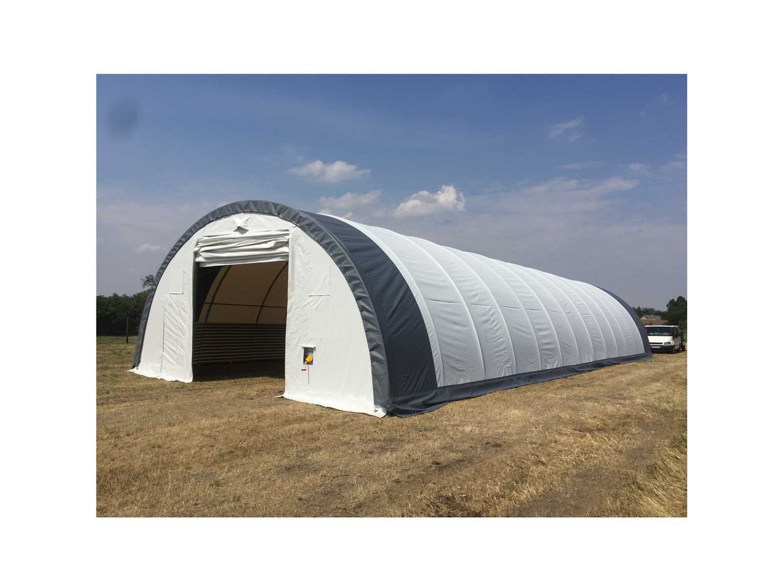 Namiot/budynek magazynowy Eversteel, rozmiar: 10x26x4,5 mt, 1380 kg, ocynkowane rury, z drzwiami rolowanymi (rozmiar: 3,5x3,5 mt) zapakowane w żelazną skrzynię. Auction-ID: A1-40417-44