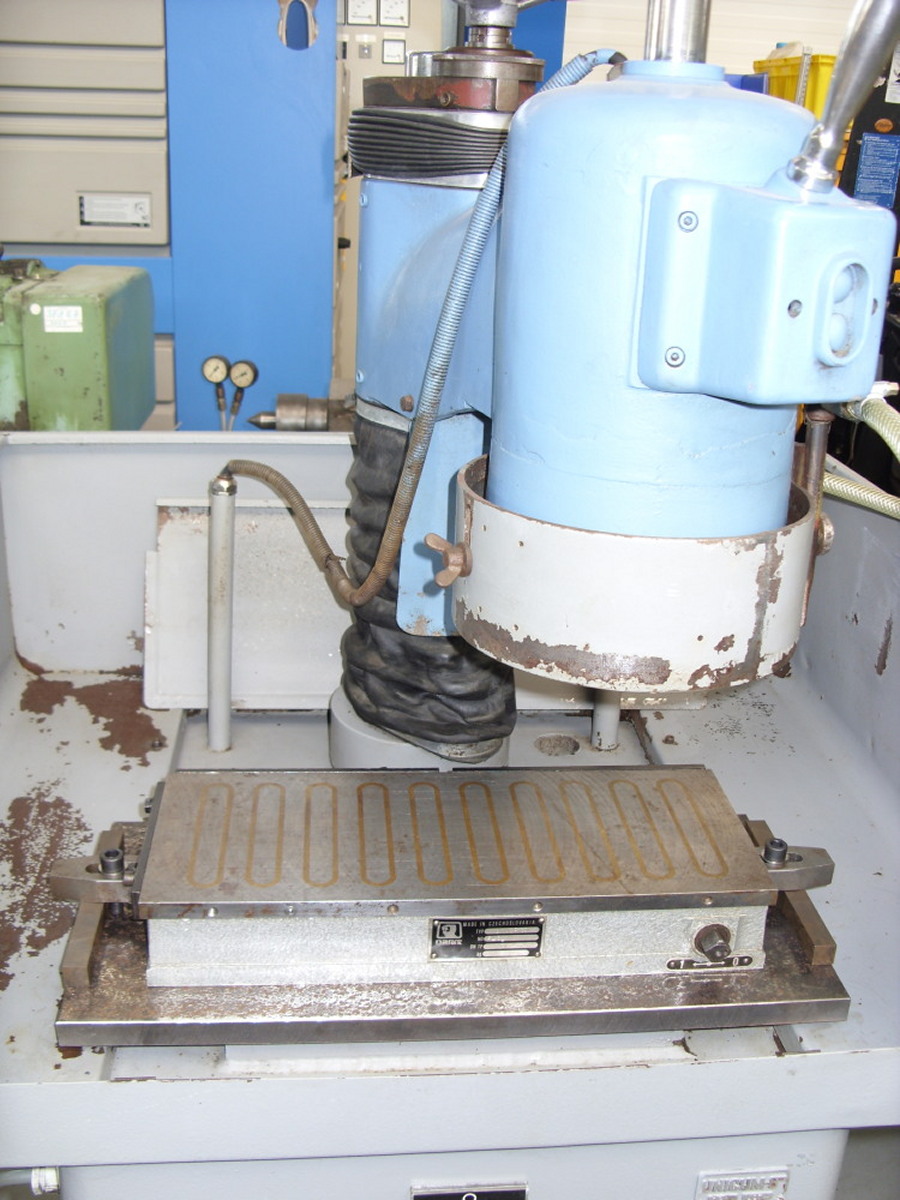 Szlifierka do kubkówLOMEFAUnicum 8Rok: 1970Długość obrabianego elementu max: 350 mm Praca maksymalna szerokość elementu: 150 mmWysokość elementu max: 100 mmPromień płyty: 200 mmPłyta magnetyczna: 400 x 160 mmZbiornik płynu chłodzącego z pompą w szafce dolnejSilnik: 1,1 kW380 Vużywany, testowany !Wymiary: 700 x 800 x 1170 mm