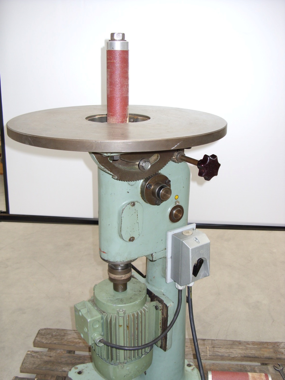 Szlifierka (wewntrz/zewntrz) Pagusdo obróbki drewnaz cylindrem szlifierskimblat drm. 520 mm Grubość: 22 mmwobrotowy 45°silnik: 380V, 50 Hz, 1,6 kWWymiary: 520x520x1200 mmNarzędzie porusza się pionowo podczas ruchu obrotowegoAkcesoria: 4 cylindry Alyu do przechowywania materiałów ściernychśr.: 50, 70, 90 i 120 mm x 223 mm długości