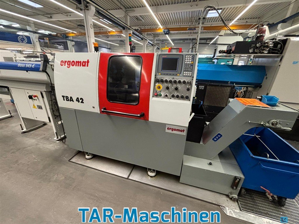 Article: turning latheManufacturer: ErgomatType: TBA-42Yob: 20006The machine was powered exclusively by oil (no emulsion) and was used only for machining brassThe turret is currently not operational. A sensor likely needs to be replacedIncludes IEMCA loading magazine BOSS 545 E, Type 32 NPlease, contact us for getting more information and pictures on mail(at)tar-mc.com or www.tar-mc.com