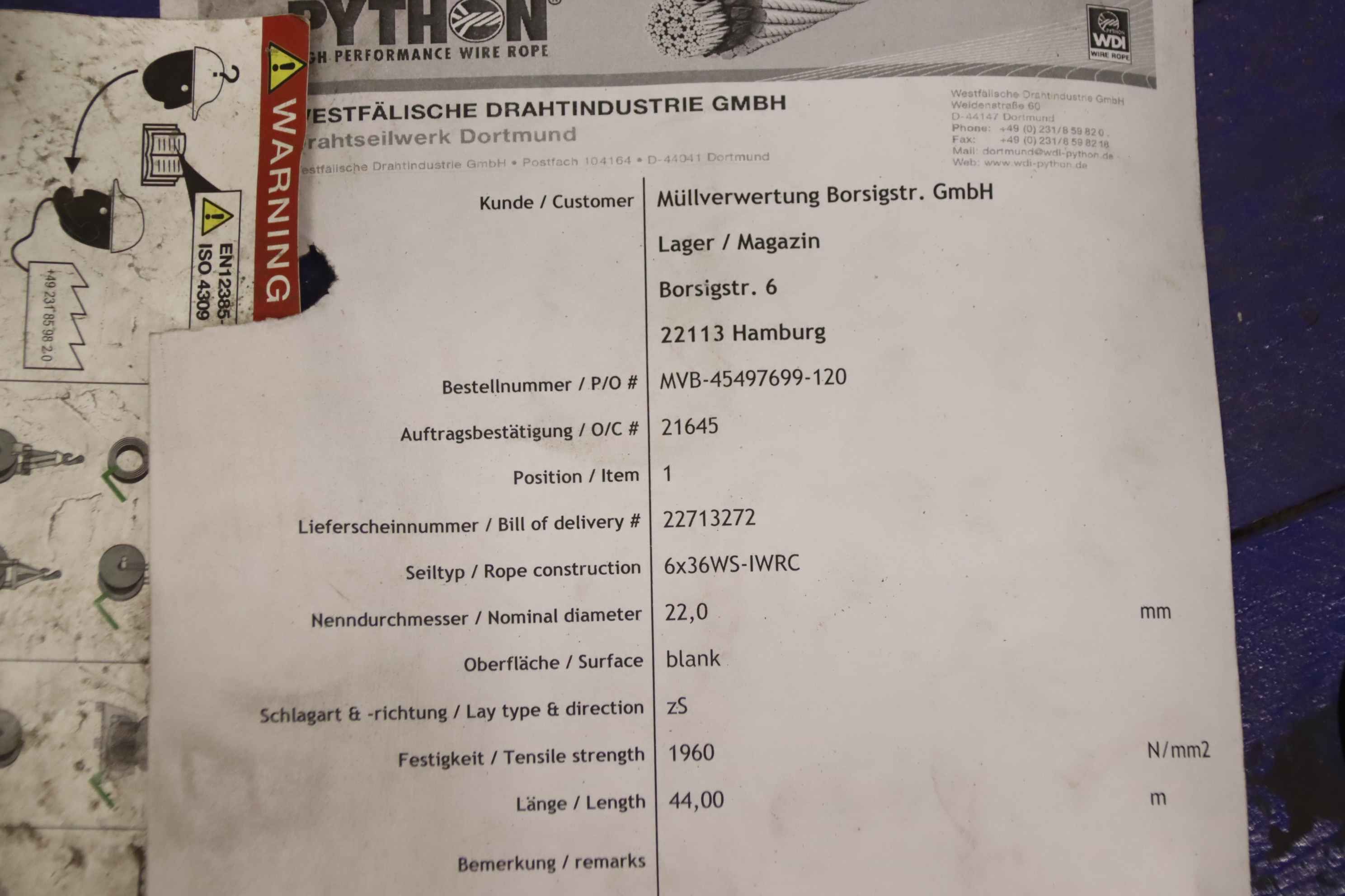 -Manufacturer: WDI Python, crane rope winch rope Ø 22 mm