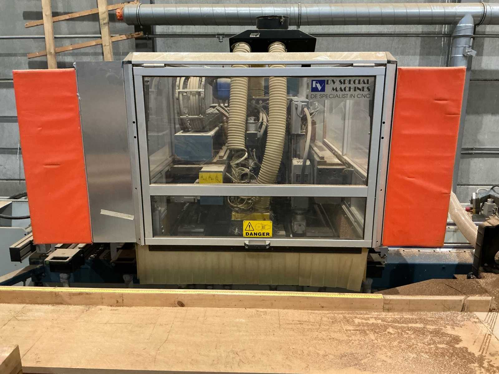 Rozmiar maszyny 2800 x 1940 x 2000mm Min. Rozmiar orobionego panelu 200 x 35 x 8mm Maksymalna wielkość orobionego panelu 3200 x 900 x 60 mm