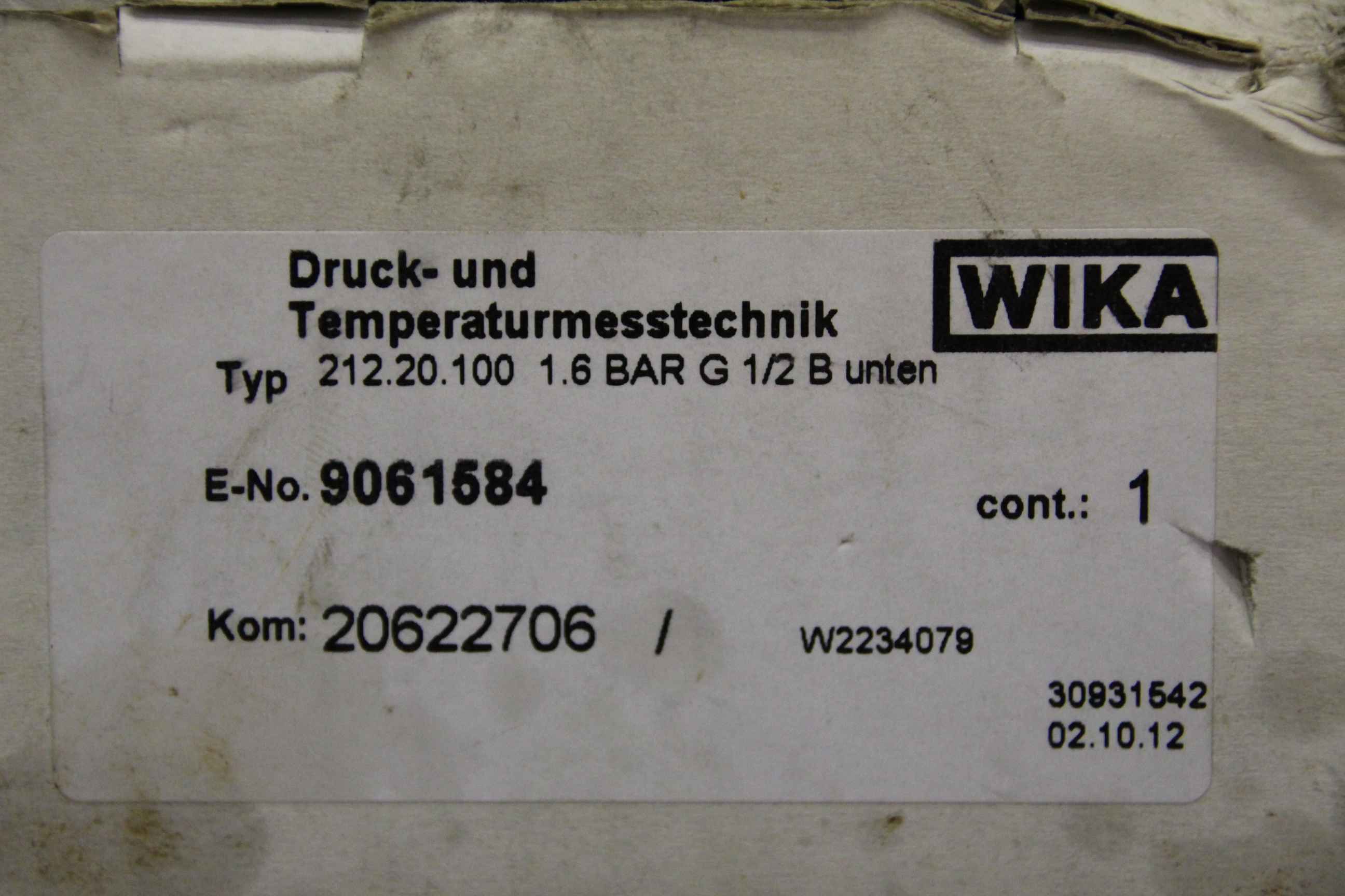 | WIKA | Kontaktmanometer NG 100 0-1,6 | 250 EUR | [Mar 2021] |