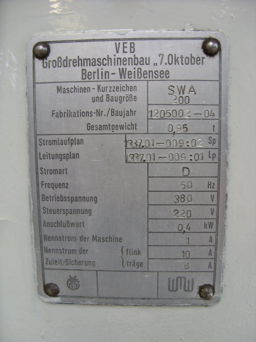 | 1982 | WMW | Werkzeugfräsmaschine WMW FUW25 | 3200 EUR | [Mar 2011] |