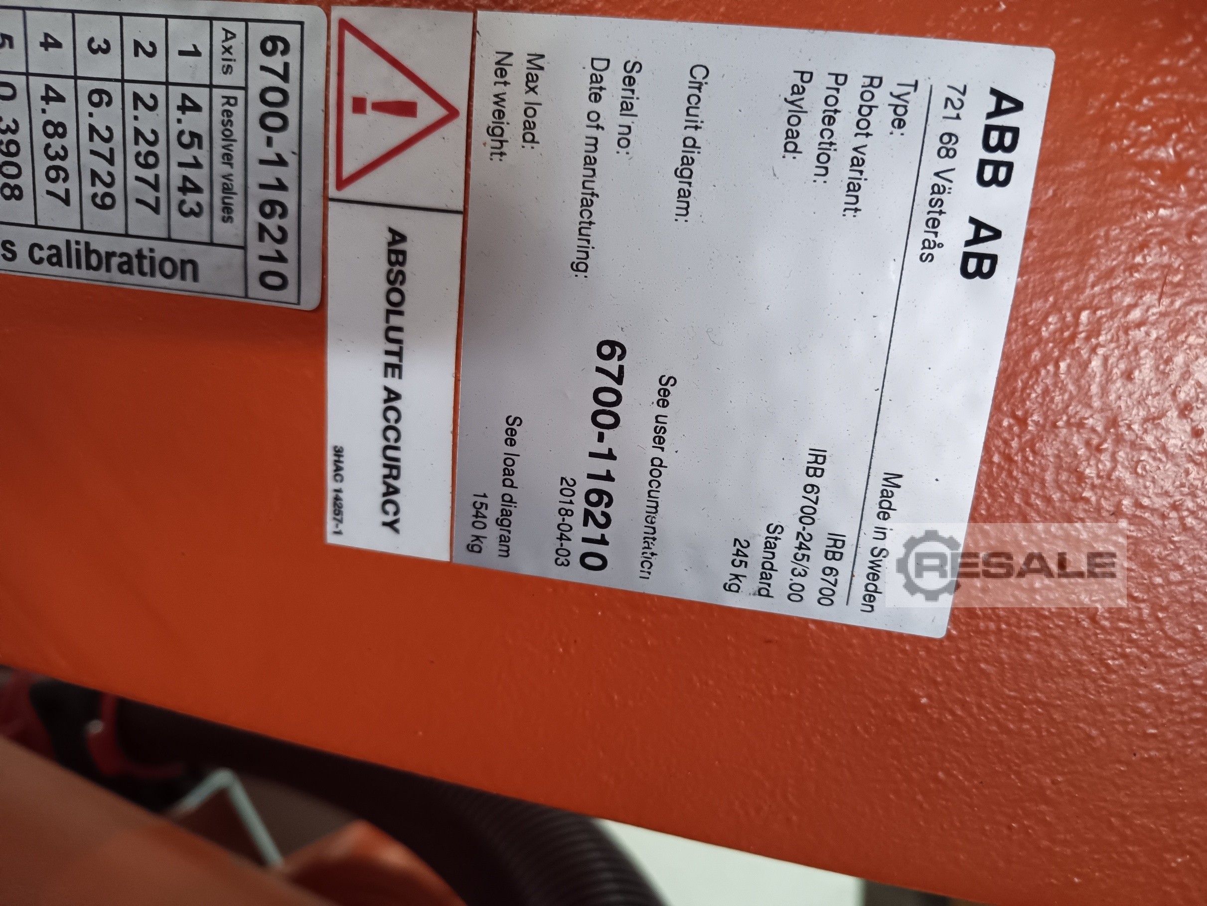 | 2008 | ABB | IRB 1600 M2004 | 12700 EUR | [Oct 2021] |