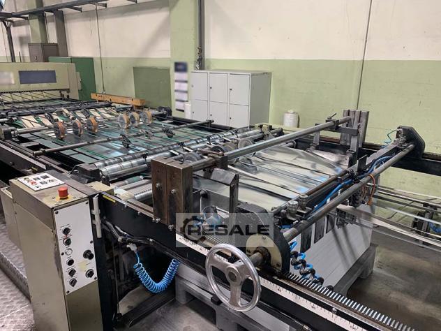 Desenrolar sem eixo Monomatic Typ MD 107 (150 mm de diâmetro do núcleo) Controle de borda lateral FIFE diâmetro máximo do rolo: 1.070 mm Dispositivo de controle de tensão da Web Dispositivo de travagem múltipla Estação de corte Precisão de corte +/-0,2 mm Ajuste automático do ângulo Ajuste automático do comprimento da folha sem mudança de engrenagem Largura de trabalho até 1250 mm min. Largura de trabalho 600 mm, comprimento de corte de 550 a 1500 mm Materiais de 60 g/m² a 150 g/m² (desenrolador máx. 120 g/m2) Dispositivo de ionização Estação de ejeção de resíduos Entrega de telhas Entrega da correia estendida até o final da pilha Dispositivo de contagem Entrega de pilha com jogger Saída mecânica máxima 300 m/min Estação de gravação Cerutti - adequada para gravação de superfície (aço - papel 1: 1.85) Saída máxima do calandra em rel ...