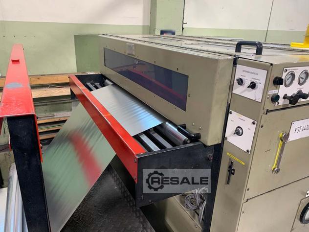 Máquina completamente recondicionada e repintada; Enrolamento de areia com eixo pneumático de descontração e rebobinação, regulação lateral elétrica, largura de trabalho de 1320 mm, diâmetro de descontração de 1300 mm, diâmetro do núcleo 76 mm, Travão pneumático Ortlinghaus, novas facas superiores e inferioresainda em funcionamento: Sim