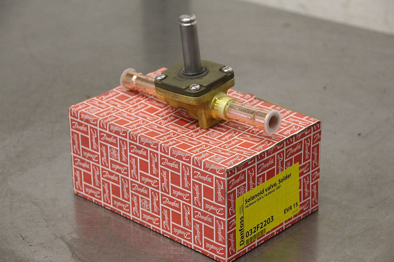 Refrigeration compressor, refrigeration machine, cooling compressor, refrigeration unit, cooling compressor, compressor, filter dryer housing, shut-off valve, ball shut-off valve, solenoid valve-Manufacturer: Danfoss, solenoid valve for refrigeration, unused original packaging-Type: EVR 15/032F2203-Connection: 16 mm-Price: per piece-Number: 12 piece-Dimensions package: 190/125/H90 mm-Weight: 0.7 kg