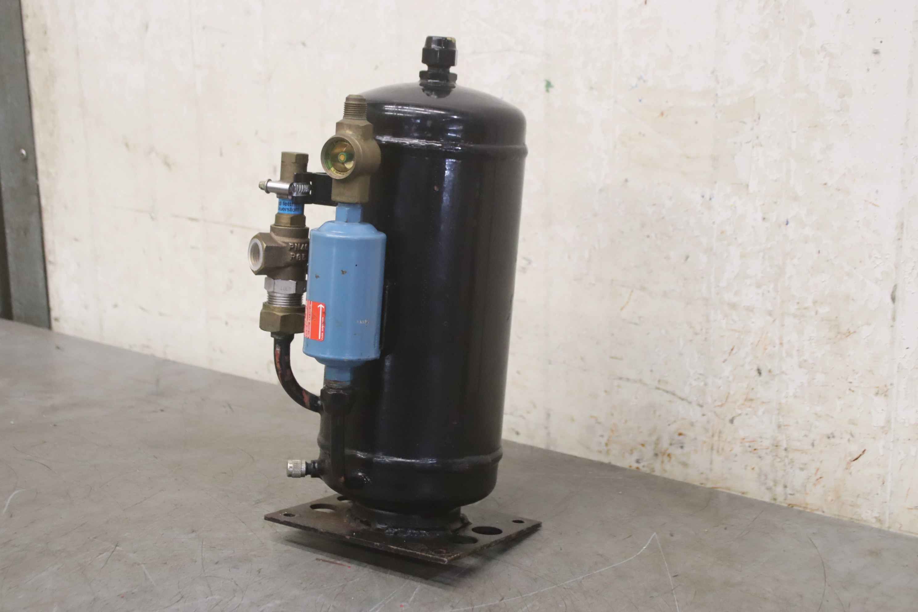 Refrigeration compressor, refrigeration machine, refrigeration compressor, refrigeration unit, refrigeration compressor, compressor, liquid collector, refrigeration unit, liquid separator-Manufacturer: ESK Schultze, liquid separator for cooling units-Type: FA 16-Permissible operating pressure: 25 bar-Dimensions: Ø 132 x 275 mm-Weight: 1.7 kg