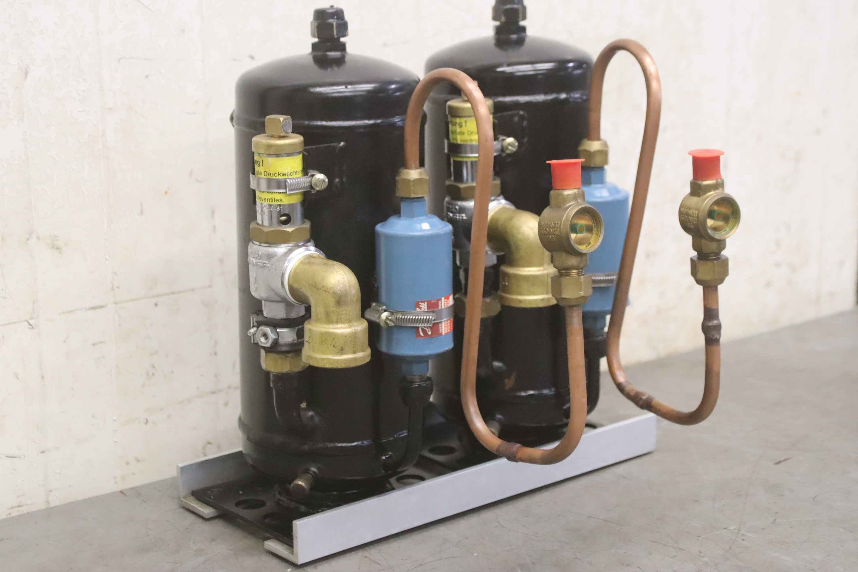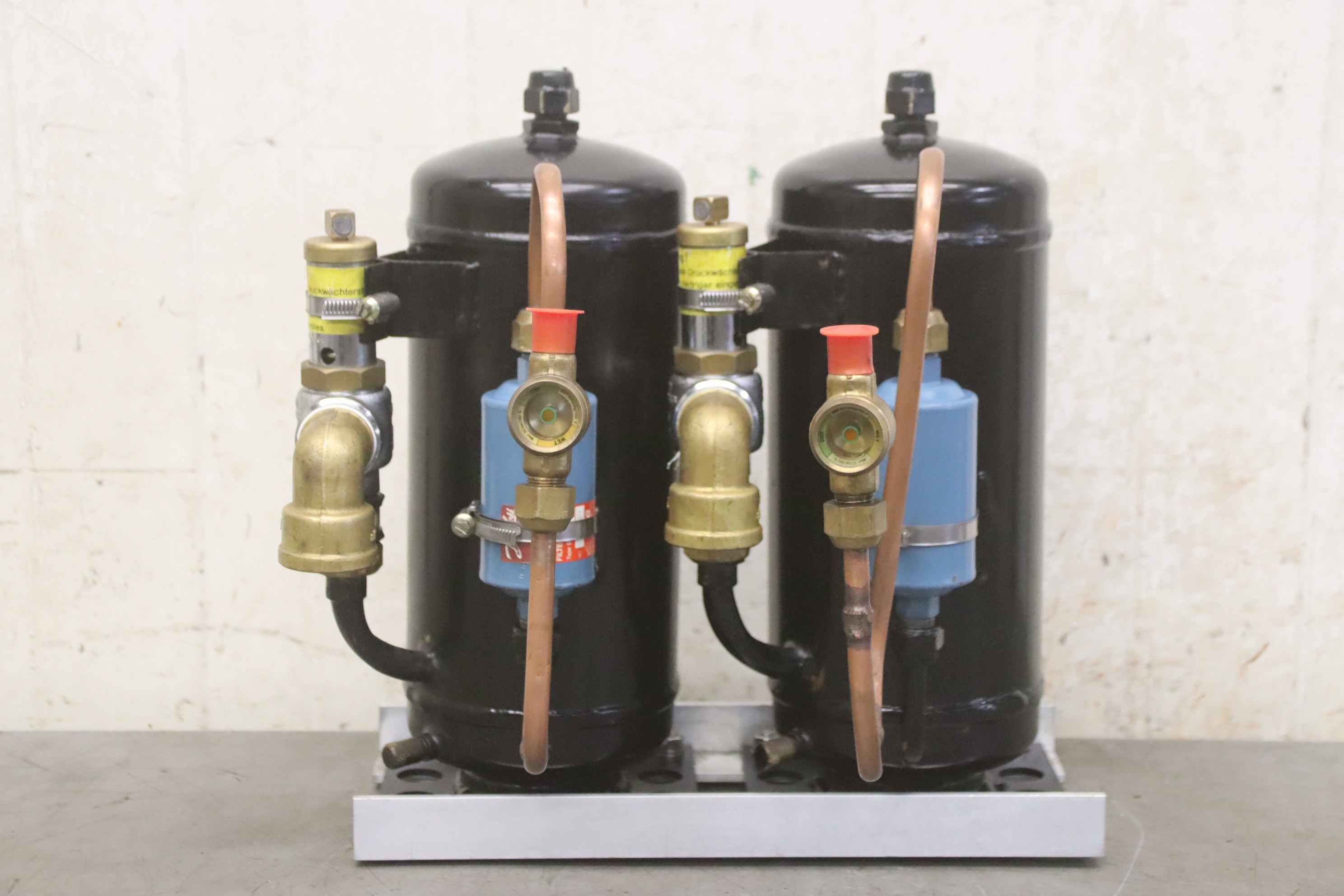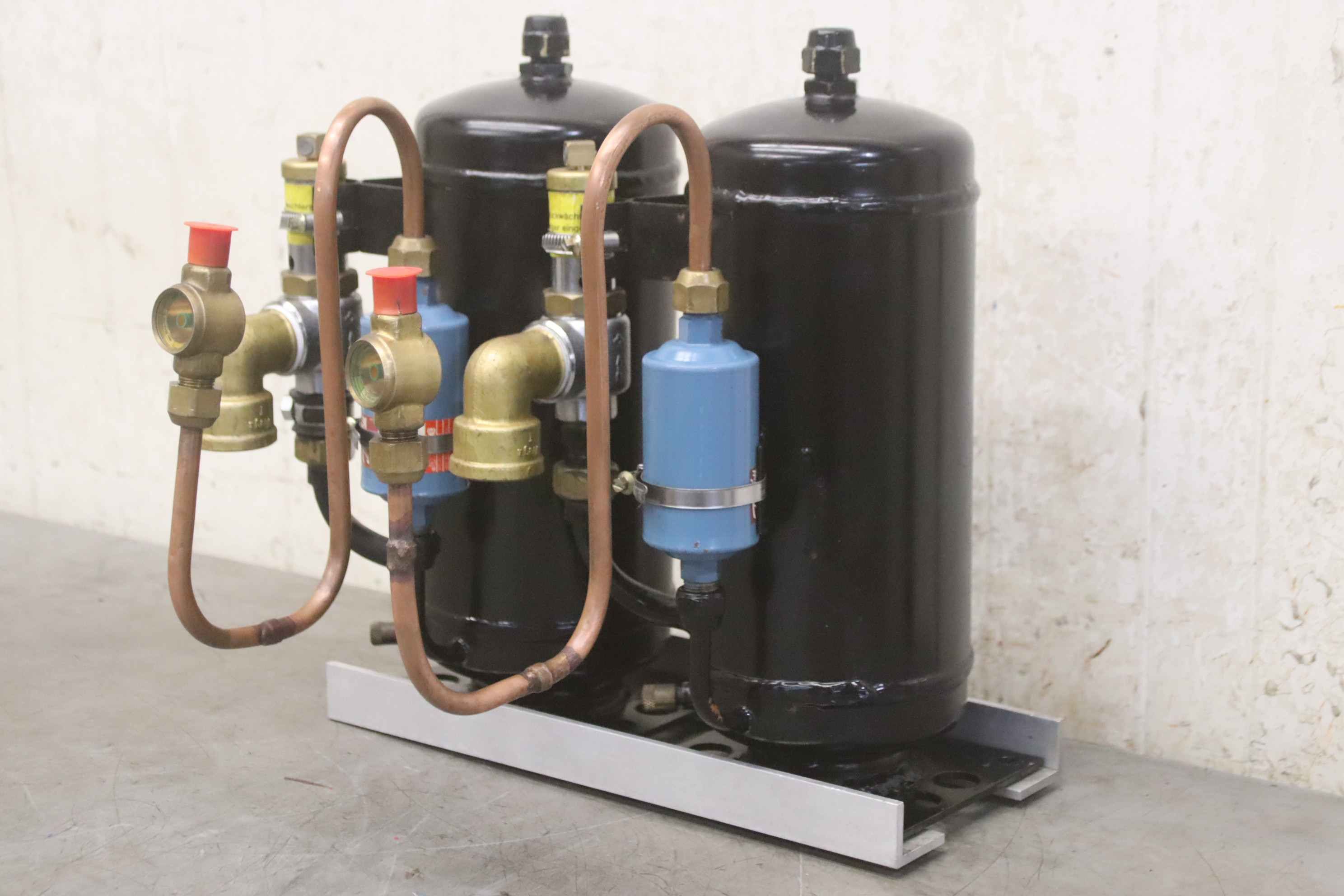 Refrigeration compressor, refrigeration machine, refrigeration compressor, refrigeration unit, refrigeration compressor, compressor, liquid collector, refrigeration unit, liquid separator, filter dryer housing, filter dryer, filter drier, liquid filter dryer-Manufacturer: Danfoss, liquid collector with filter dryer 2 pieces / double version-Filter dryer: Type: DX 083-Permissible operating pressure: 28 bar-Individual components: see photos-Price/tax: complete-Dimensions: 350/350/H360 mm-Total weight: 13.8 kg