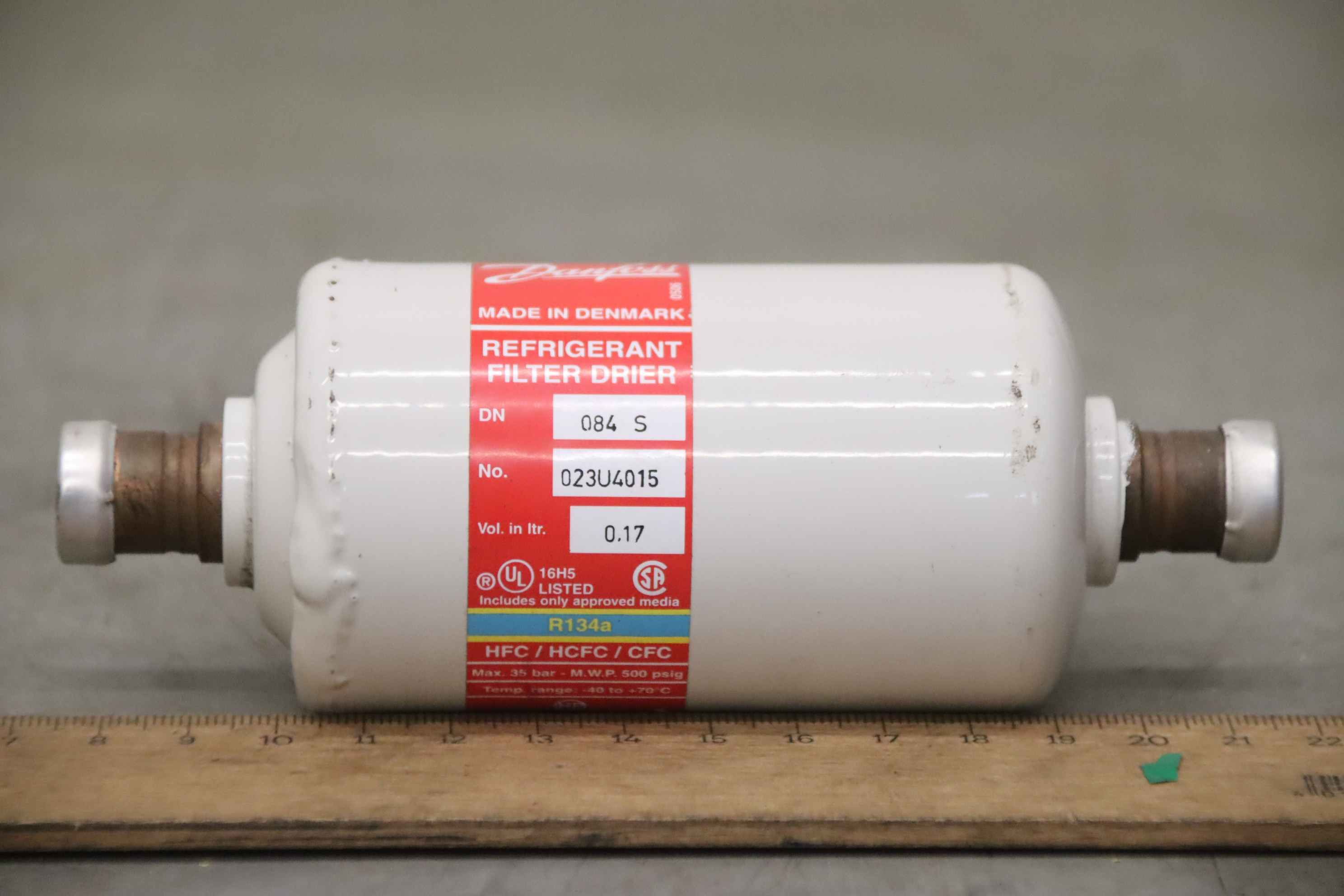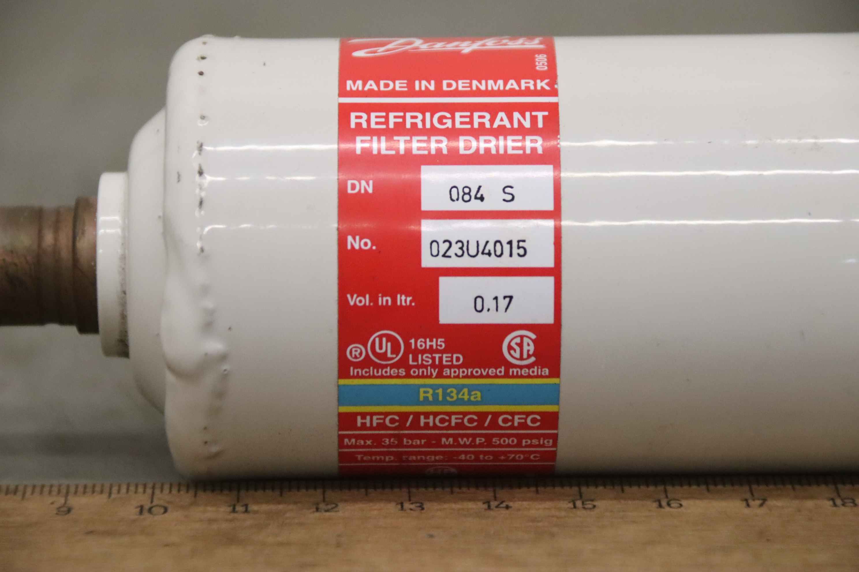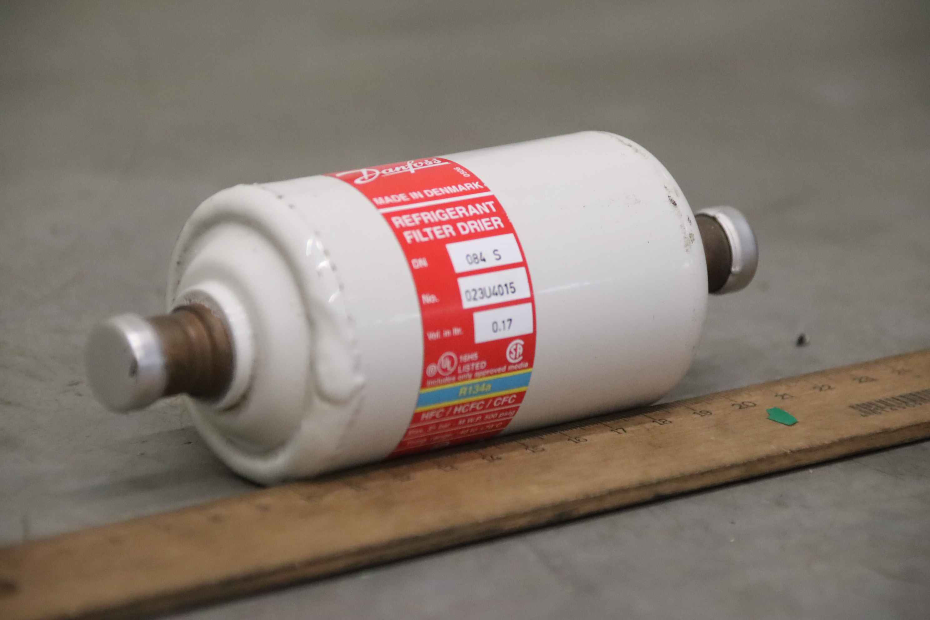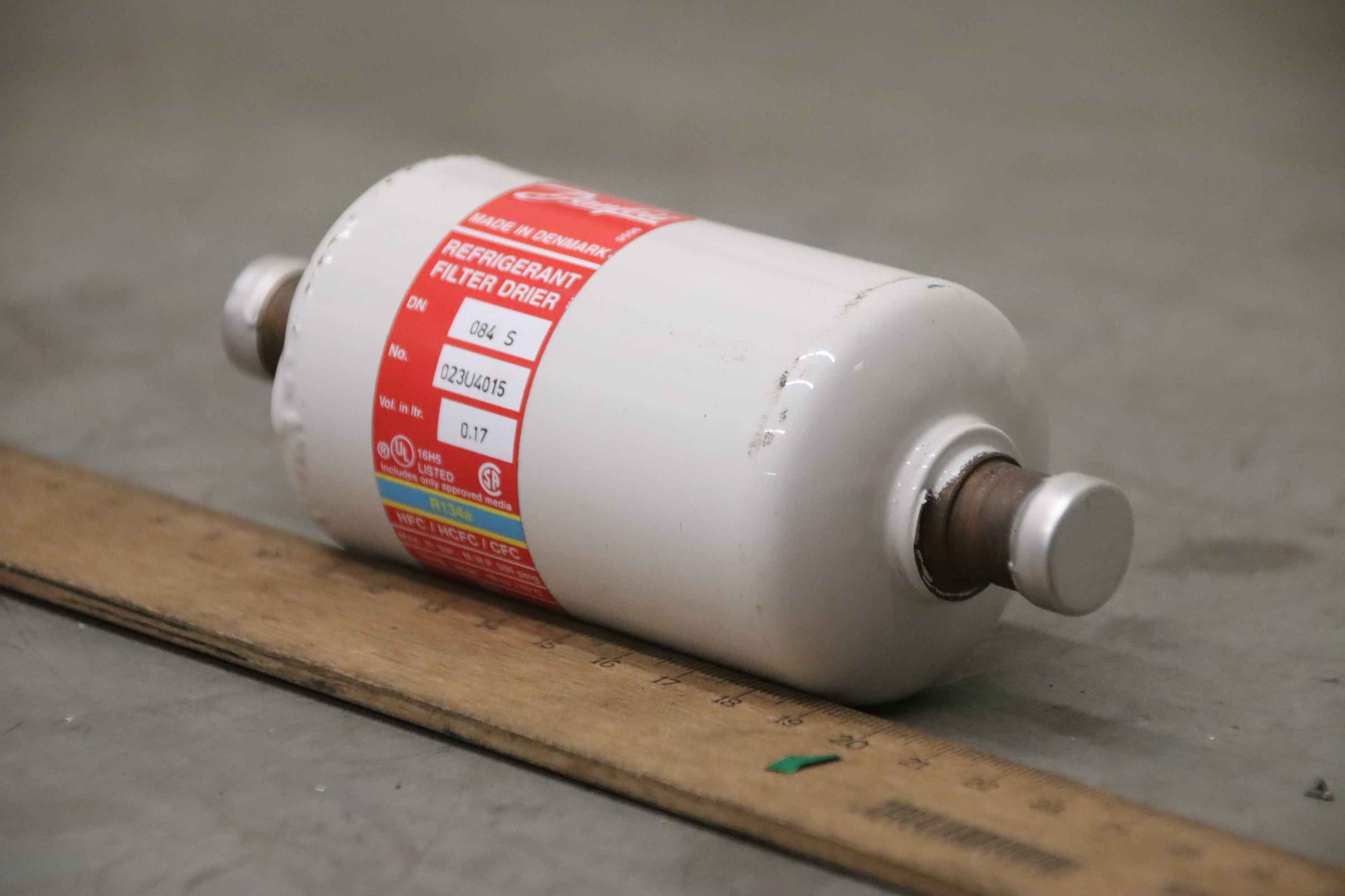 Refrigeration compressor, chiller, refrigeration compressor, refrigeration unit, refrigeration compressor, blower, filter drier housing, filter drier, filter drier, liquid filter drier-Manufacturer: Danfoss, Refrigerant Filter Drier-Type: DN 084 S-Content: 0.17 liters-Number: 2x filter dryer available-Price per piece-Dimensions: Ø 54 x 143 mm-Weight: 0.4 kg/pc.