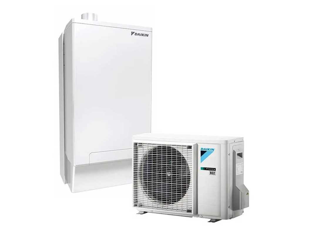 Batch composition: 1x - Daikin Heat Pump Outdoor Unit with Inverter Technology - manufacturer code EVLQ08CAV3 1x - Daikin HYDROBOX 8 kW H/O for heating only - manufacturer part number EHYHBH08AAV32 1x - Condensing boiler DAIKIN ALTHERMA - manufacturer part number EHYKOMB33AA2 1x - Concentric fitting 80/125 - manufacturer code EKHY090717 1x - Flue gas splitter ø80 mm - manufacturer code EKHY090707 1x - Daikin HydroBox/Boiler Hydraulic Interconnect Cover - manufacturer part number EKHY093467 1x - DN 20 bypass valve with angle connection - manufacturer part number 140111 1x - Wall Mounted Programmable Thermostat for HPU Hybrid Systems - manufacturer code EKRUCBL1C 1x - Hydraulic Connection Fittings/Valves Set - manufacturer part number EKVK1AA 1x - Insulated dirt separator with magnet, 1\" brass body - manufacturer part number 546316 1x - Daikin condensate water collection tank for outdoor ...