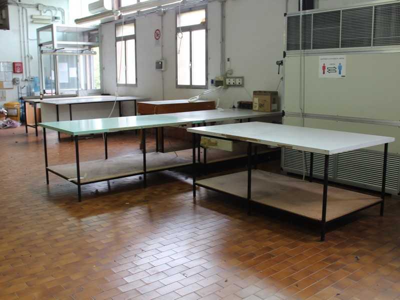 Including various workbenches of various sizes and mannequins with pedestals:Approximate dimensions of the packages: 1400x800x900 (3x) mm 2800x850x800 (1x) 2000x1000x900 (2x) 2000x1200x860 (3x) 2500x1000x910 (2x) 1300x750x800 (3x) 1400x800x960 (1x luminous)Estimated weight: 850 kg Approximate dimensions: to be calculated before collection Auction-ID: A7-44996-115
