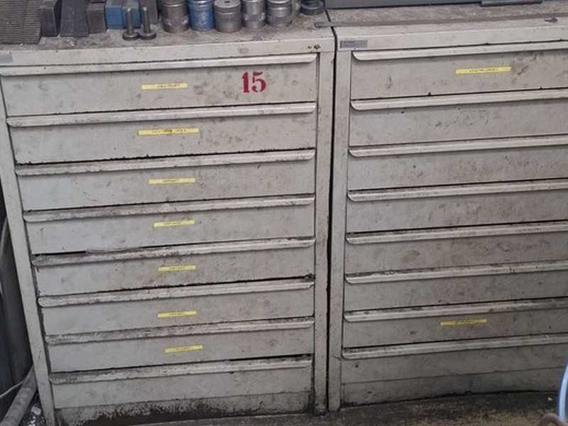 Including: N°2 drawer units of eight shelves each complete with various tools (drills, cutters, tapping machines, various tools).Estimated weight: 400 kg Approximate dimensions: 620x550x930h (x2) mm and 600x400x350h (x2) mm Auction-ID: A7-44996-169