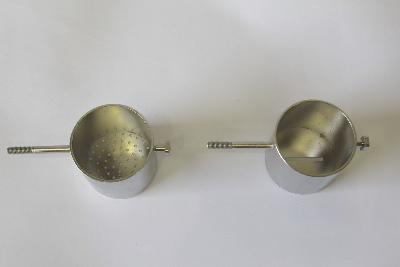Ice cream press, shaper, spaghetti ice cream press, ice cream press cup -made of stainless steel tube: Ø 79 mm -Shape: Spaghetti 45 pieces available -Holes: Ø 3 mm -Shape: wide pasta, tagliatelle, lasagne, 25 pieces available -Slot: 4 x 49 mm -Price per piece -External dimensions: 160/79/H78 mm -Weight: 0.45kg
