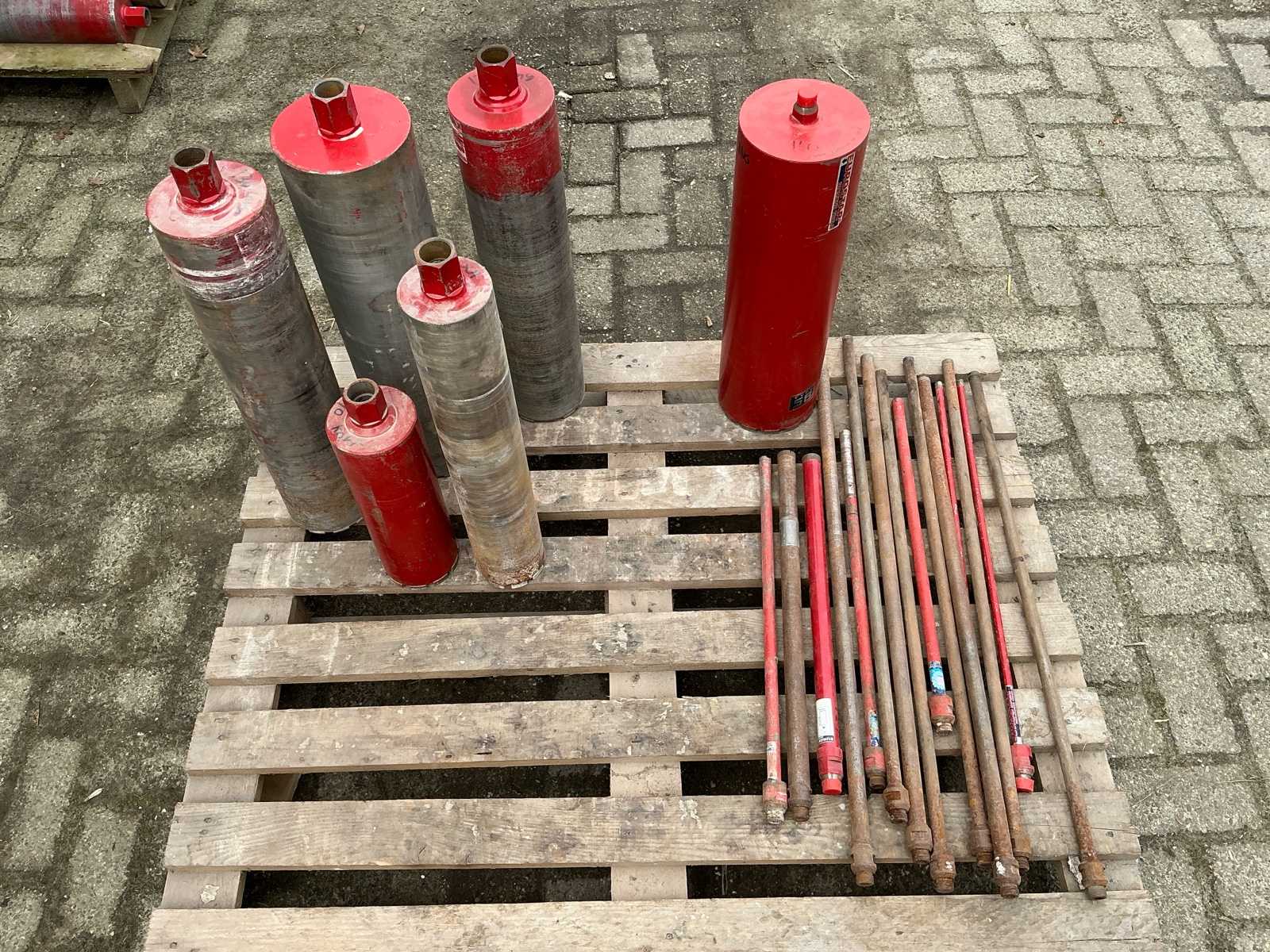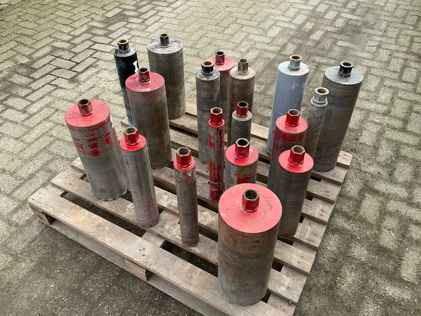 Equipped with: connection R 1/2\" Thin-walled. Diamond concrete drill. Different heights and diameters. 3 new used the rest. Auction-ID: A1-41988-107