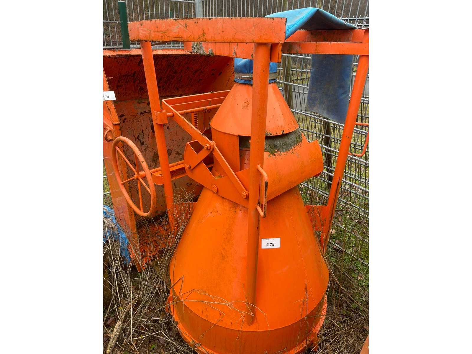 Content: 160 ltr, Color: Red, Weight: 48 kg, Drum speed: 32/min, Drum opening: 380 mm, 220V-50Hz. Auction-ID: A1-40417-100