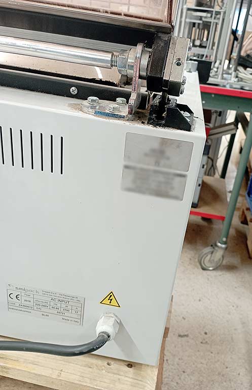 A fully automatic tray sealing machine Sealpack is available. Packaging capacity: 10-12cycles/min, max. film width: 420mm, max. tool temperature: 210°C, max. sealing tool weight: 150kg, max. sealing dimensions X/Y: 280mm/345mm, max. tray height: 120mm, max. film roll diameter: 400mm, max. film core diameter: 3inch, max. roll weight: 65kg, closing pressure: 1450kg, tool trolley dimensions X/Y/Z: 1100mm/950mm/1400mm. Machine dimensions X/Y/Z: approx. 3150mm/800mm/1700mm, weight: approx. 1600kg. Including one tool trolley. Documentation available. An on-site inspection is possible.