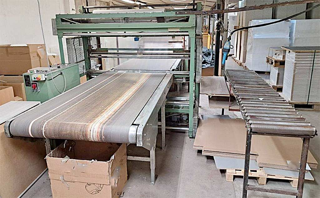 High precision protective film laminating machine Brand: Omma Type: PRO-J14_TF New machine Single machine (not integrated in a line) Workpiece dimensions: min. width 130 mm max. width 560 mm min. length 300 mm max. length 2.250 mm min. thickness 19 mm max. thickness 25 mm For application of self-adhesive film on the top of painted surfaces. Laminating rollers Ø 150 mm Working width 1.300 mm Max. workpiece thickness 80 mm Speed adjustable 5/25 m/min Working height (adjustable +/- 20mm) 905 mm Connected load kW 0.75 Integrated insertion/exit rollers Length (approx.) 300 mm Color RAL 7021 + RAL 2004 Operator side (in front of the machine, towards the entrance) right side Standard voltage v 400/50/3+N+T Max. Outer diameter of roller Ø 300 mm Inner diameter of roller Ø 76 mm Technical equipment: - High precision automatic cross cutting foil cutting ...