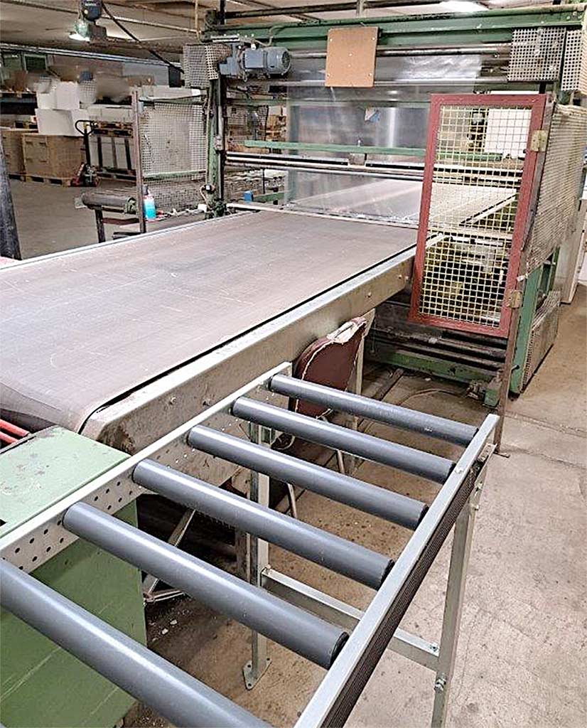Automatic Foamfoil - Packing machine EASY 250 Special The Easy 250 Special is wrapping your precious workpiece with a foamfoil. So the surface is protected in a perfect way, also in a hardpaper box. The wrapping is in throughfeed and independed of any different width. Made for Batch1. Different length and width in the mix ! The line is mainly existing of: -infeed transport belt with Servodrive for precise positioning, length 2800 mm -First welding station with fast positioning in the width -Center transport belt with Servodrive, length 2800 mm -Second welding station with fast positioning in the width Foil width top and bottom: 260 - 600 mm Foil roll diameter: top and bottom: 800 mm Foam foil thickness appr. 1,0 mm Workpiece length appr. 1500 - 2600 mm Workpiece width appr. 300 - 1400 mm Workpiece thickness appr. 35 - 90 mm