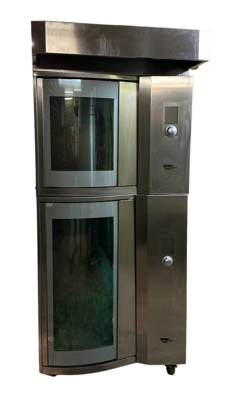 In-store baking oven Wiesheu Dibas with self-cleaning and extractor hood Manufacturer : Wiesheu Type : Dibas1 Year of construction : 2010 For 5 trays 60x40cm 400V 9,6 kW Type : Dibas2 Year of construction : 2010 For 10 trays 60x40cm 400V 18,4 kW Details see pictures.