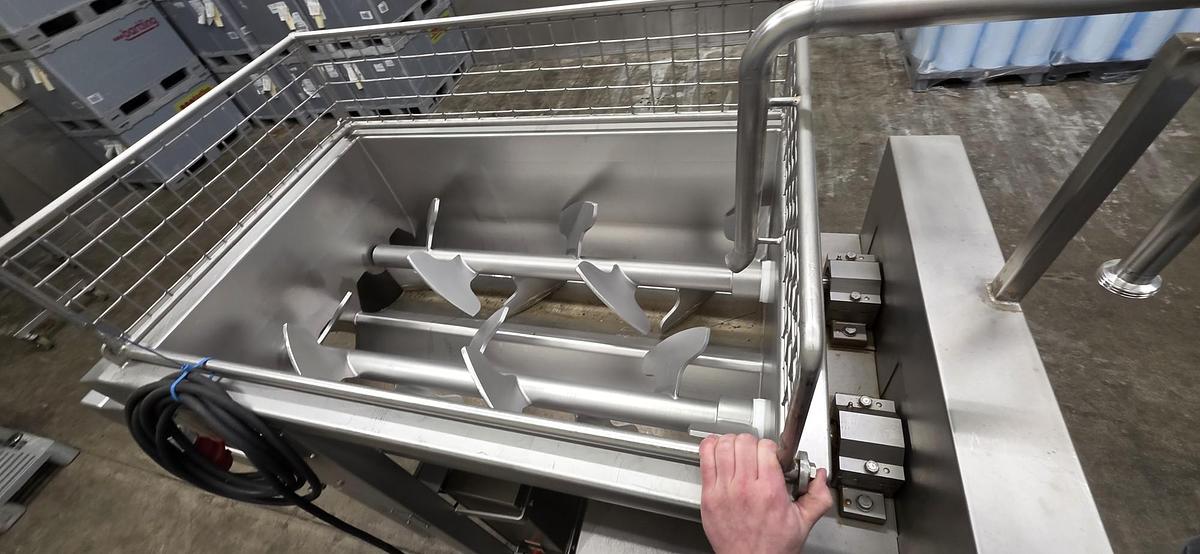 BOLDT BFMA double-shaft paddle mixer – 220 L – stainless steel – year of manufacture 2007, Industrial double-shaft mixer with 2 rotation directions and front discharge, ---------------------------------------------------------------, Machine description, For sale is a BOLDT BFMA double-shaft paddle mixer from the year of construction 2007 in Stainless steel version., The machine is ideally suited for homogeneous mixing of:, - powder, - Granules, - spice blends, - Paste products, - Food and non-food products, The counter-rotating mixing shafts achieve a particularly even and gentle mixing., ---------------------------------------------------------------, ⚙️ Technical Data, - Manufacturer: BOLDT, - Type: BFMA, - Year of manufacture: 2007, - Gross content: 220 liters, - Net weight: 170 liters, - Material: completely stainless steel, - Discharge: 2 Frontentleerungsventile, ...