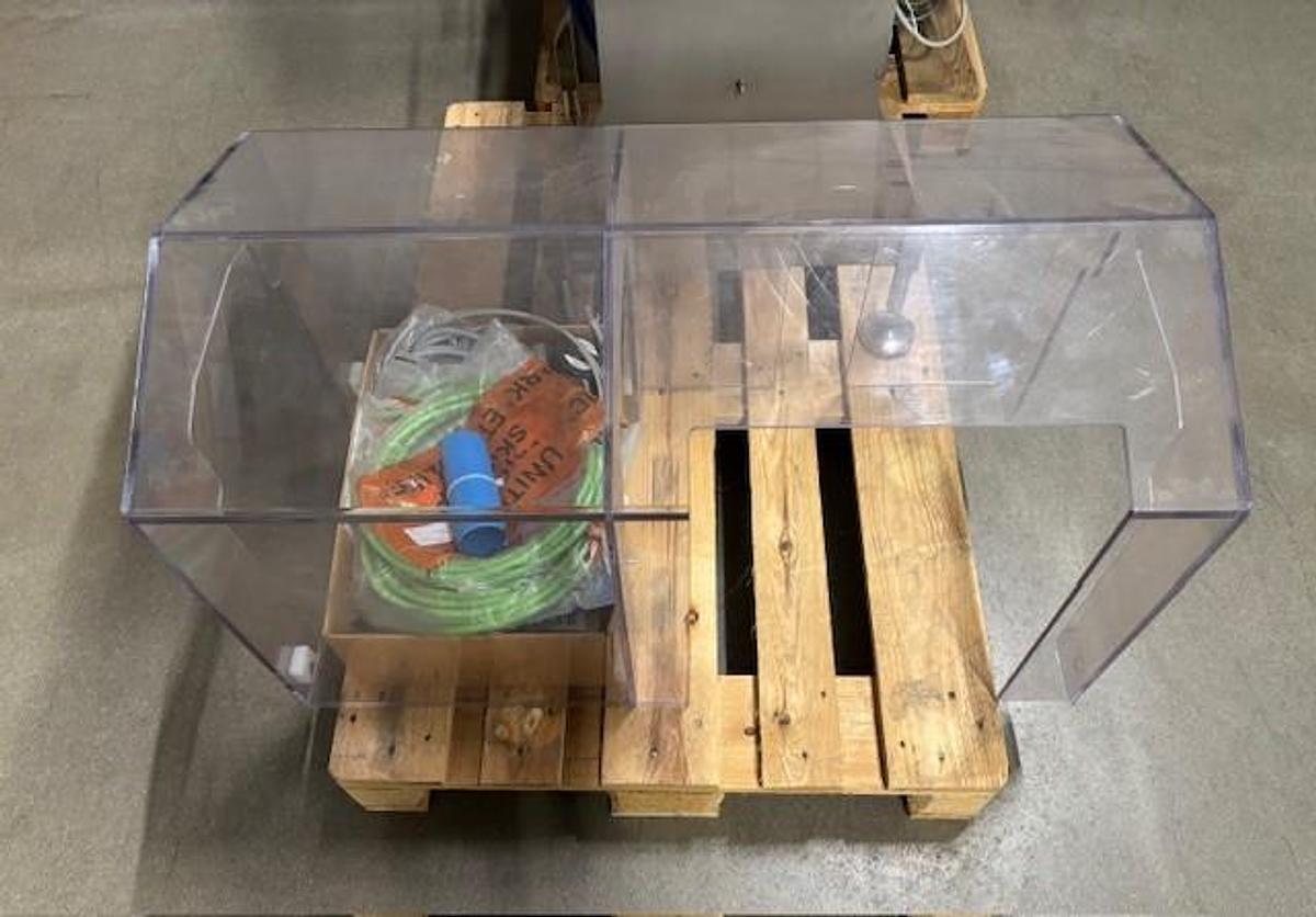 KITZINGER contino 250BS1 bucket washing system, still in original packaging, System structure:, 1. 2000mm inlet table, wash material transport via scan belt chain with cams every 500mm, fixed pass-through height 400mm height (hold-down device adjustable with M6 threaded rods), bottom partially open with space for 1 E2 container as dirt trap, horizontal pass-through opening downwards, self-draining bucket bottom, 2. Washing 1000mm long, tank 400l with large outer filter housing, EDUR stainless steel circulation pump 4kW 1500l/min at 1.5bar, heating 20kW steam directly with Spirax Sarco mixing nozzle, 3. Rinse with fresh water, hourly requirement 300-400l (adjustable), length 800mm, including steam countercurrent, Inlet table 2000 mm Washing 1000 mm Rinsing 800 mm Neutral area 500 mm Blow-off 1800 mm Outlet 2000 mm Total length 8100 mm, KITZINGER contino 250BS1 bucket washing system, pump ...