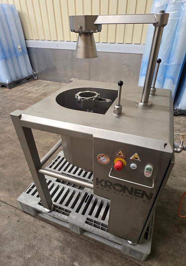Crucifer processing made easy - with the KSB-2 you can debulk up to 600 cabbage heads per hour precisely and quickly, Semi-automatic de-strunking process (two-hand operation), Good condition, only a few operating hours, adjustable drilling depth, incl. standard drill head Ø 90 mm, Compressed air: 6 bar, Motor: 0.9 kW, The stalk stripper KSB-2 efficiently and professionally detaches whole cabbage heads (e.g., red and white cabbage, pointed cabbage) and is characterized by its user-friendly operation, stability, and hygienic design., Info at: .kronen.eu/de/loesungen/kohlstrunkbohrer-ksb-2, Note: The video shows the KSB-2 and the CAP 68, the predecessor of the CAP 350., power: about 2,000 kg/h, Dimensions / weight: L x W x H: 840 x 1,100 x 1,400 mm, Weight: 230 kg