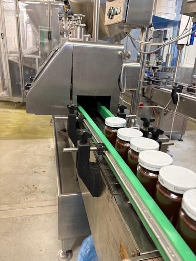 available from July/August 2026, in operation for 225 and 380 ml jars with TO 58 and 66, The machine is currently operating with nitrogen blanketing (no steam), which drives the oxygen out of the headspace., For sale is a VTB Glass seal machine (Model VM 105 Twist Off) in good, used, and fully functional condition., The machine is currently still in operation and can be inspected at any time by arrangement. It is ideal for the Food industry (e.g., canned foods, sauces, jams) and convinces with its robust stainless steel construction as well as reliable sealing technology., Inline sealing machine for twist-off closures, Integrated Lid sorting for 58 and 66 closures, Gas purging system (optional, usable) for longer shelf life, Pressure rollers for reliable sealing, Transport belt with adjustable side guides, Height adjustment for different glass formats, Operator panel rotatable and swivel ...