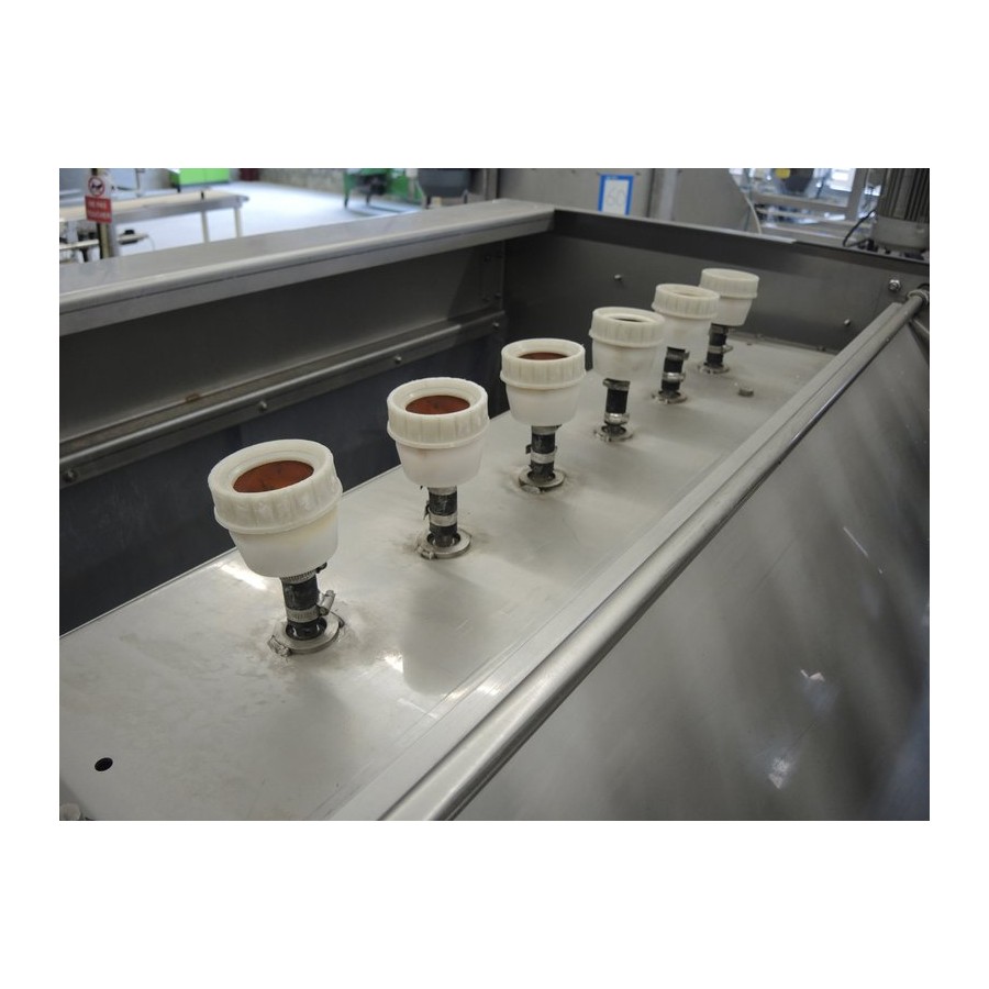 Sistema de aceitação húmida, sistema de natação/afundamento, recipiente de natação/pia com cinto de descarga, esfregão de cinto, máquina de lavar cinto para frutas e legumes utilizados Fabricante: SCHNEIDER Maschinentechnik Tipo NA 650 Altura de enchimento aprox. 2 m Funil aprox. 2,4 x 1,9 m Profundidade para a banda aprox. 1,2 m Largura de banda aprox. 600 mm Conduza através de motor de engrenagem infinitamente variável Dimensões totais: aprox. 4 x 2,1 x 3,1 m A fábrica foi utilizada na produção de frutas e vegetais. Alterações e erros nos dados técnicos, informações e preços, bem como na venda intermédia reservada.