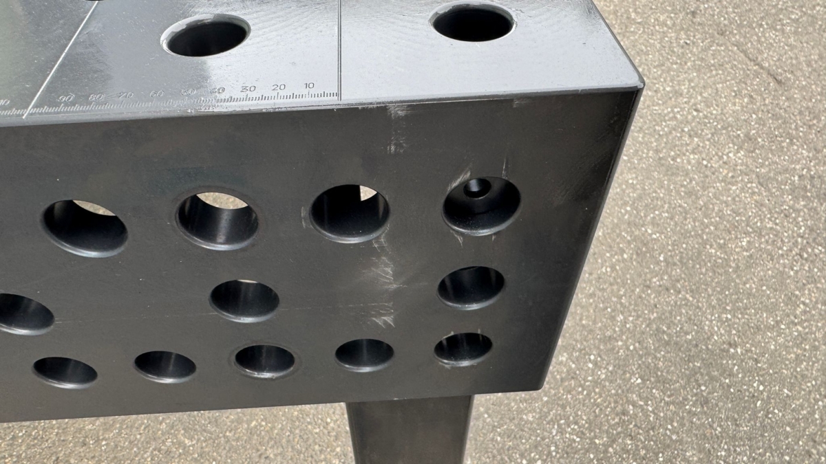 : neu : ca. 2 - 4 Wochen ab Auftr : 2860 €: 1500 x 1000 mm: 850 mm: 8000 kg: 541 kg: 200 mm: 28 mm - Fully milled table top 25 mm in S355J2+N with high degree of accuracy (+/- 0.05 mm) and rounded edges and holes- Hard chrome-plated table surface Cr75The main advantage of our tables compared to conventional systems is with the hard chrome plating Cr75, that this process achieves a much deeper penetration into the base material of up to 0.07 mm and the hardness of the surface reaches up to HV750. This also ensures optimum and lasting anti-spatter adhesion on the surface, which is one of the most efficient on the market.- Exact dimensional and fitting accuracy of the tools with 28 mm perforation (compatible with comparable premium suppliers)- Grid lines 100 x 100 mm- 4 solid table feet withload capacity 2 ton/feet and levelling option- Different foot variants available (standard, height- ...